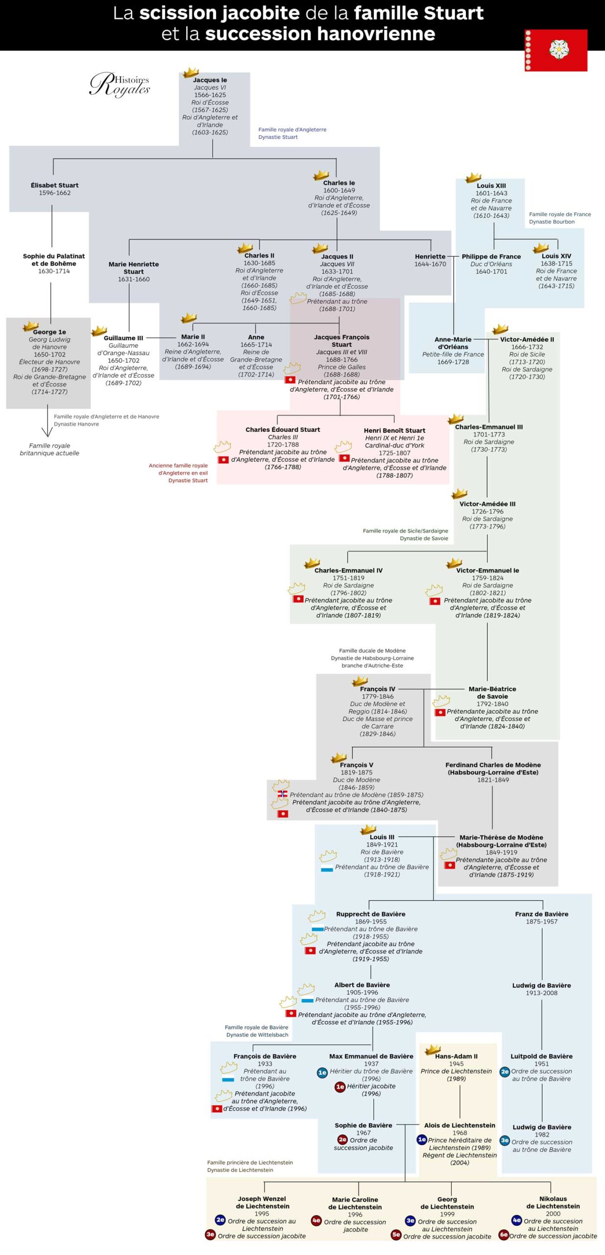 Par une transmission complexe, la prétention au trône jacobite au trône britannique revient à l’actuel duc de Bavière. La transmission étant possible par les femmes, cette prétention devrait un jour revenir à son fils Joseph Wenzel. Il s’agirait alors d’une situation inédite : Joseph Wenzel serait le chef d’État d’un pays, le Liechtenstein, et en même le prétendant au trône britannique, selon la prétention dynastique jacobite, c’est-à-dire si les Stuart n’avaient pas été détrônés.