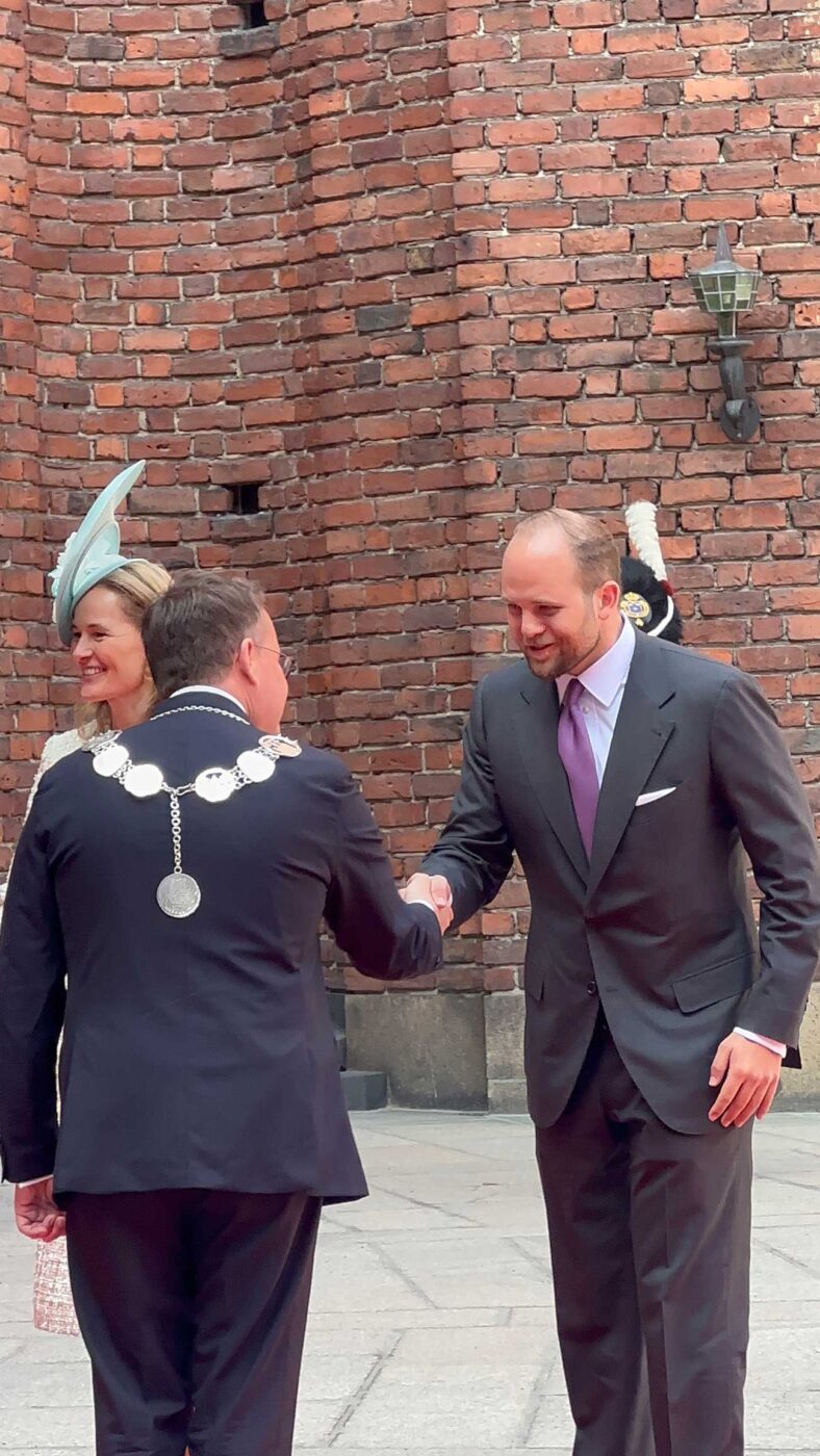 Le roi Harald V et la reine Sonja de Norvège étaient présents avec leur fils, le prince héritier Haakon, ainsi que le roi Frederik X et la reine Mary de Danemark, accompagnés de l’ancienne reine Margrethe et de sa sœur Benedikte. Le roi Philippe et la reine Mathilde de Belgique ainsi que le grand-duc Guillaume et la grande-duchesse Stéphanie de Luxembourg étaient présents avec l’ancien grand-duc Henri. Le roi Maha Vajirakongkorn et la reine Suthida de Thaïlande avaient même fait le voyage. Des représentants des anciennes familles royales de Serbie et de Roumanie ont répondu à l’invitation, ainsi que des représentants de la principauté de Liechtenstein. Les invités royaux étrangers ont d’abord partagé un déjeuner à l’hôtel de ville de Stockholm, puis en soirée, ils étaient invités à un grand gala d’anniversaire au palais royal.