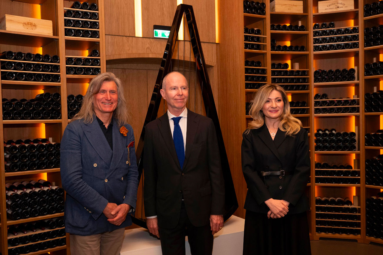 Stefano Conticelli, fondateur de l’atelier de Bottega Conticelli, également membre du club, avec le prince Michel de Yougoslavie et Alessia Demetz dans les caves de l’Hôtel de Paris Monte-Carlo (Photo : ADM CLUB/Stefano de Lorenzi)