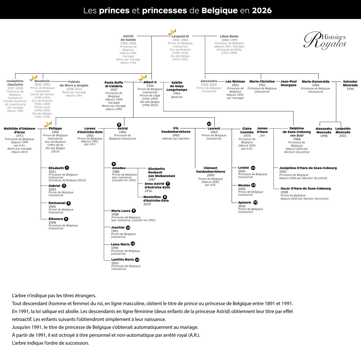 Au début de l’année 2021, le roi Albert II, qui a abdiqué en 2013 en faveur de son fils Philippe, avait reconnu être le père de Delphine. En octobre 2021, Delphine arrivait au terme des sept années de son combat devant les tribunaux, en obtenant la reconnaissance officielle de cette filiation et l’octroi des titres auxquels elle avait droit. Depuis lors, Delphine de Saxe-Cobourg porte le patronyme de la famille royale, le titre de princesse de Belgique et le prédicat d’Altesse Royale. Il en va de même pour ses deux enfants, Joséphine et Oscar. L’arrêté royal de novembre 2015 concernant les titres de princes de Belgique indique que tous les enfants et petits-enfants du roi Albert II y ont droit.