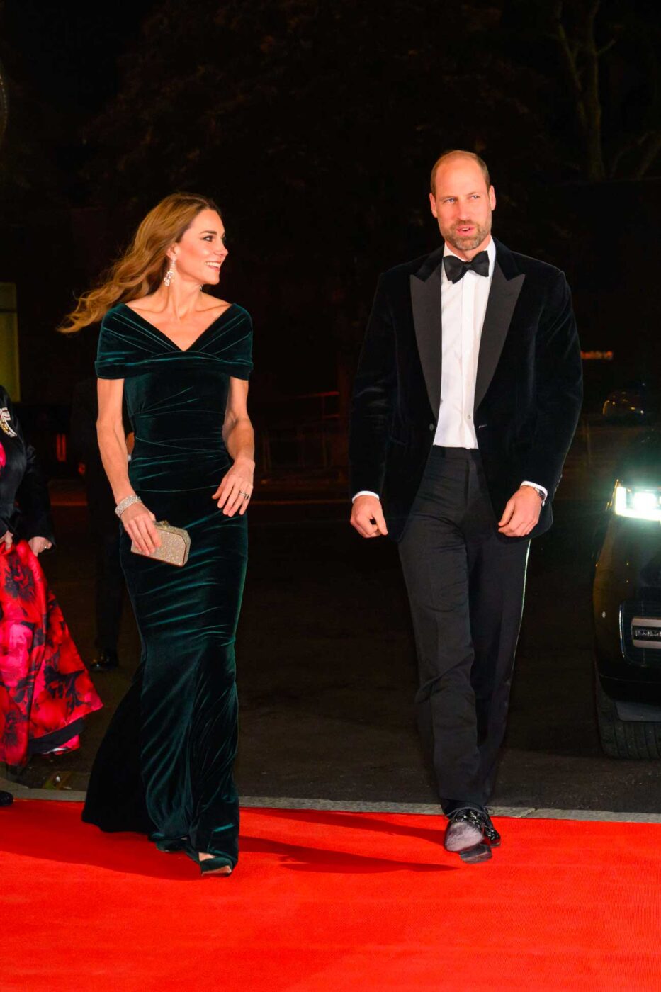 Pour ce grand retour au Royal Albert Hall, la princesse de Galles avait opté pour une robe en velours vert émeraude, signée Talbot Runhof, selon UFO No More. Elle portait des escarpins assortis de chez Manolo Blanik. La presse people a suivi avec attention cette sortie de Kate, soulignant tous les gestes galants et tendres du prince William à l’égard de son épouse. « William a apporté un soutien indéfectible à son épouse et lui a tendrement posé la main dans le dos à leur arrivée », écrit Hello. Le magazine ajoute que la princesse de Galles « a affiché un regard amoureux pour son époux dévoué ». The Sun souligne combien « Catherine était resplendissante ».