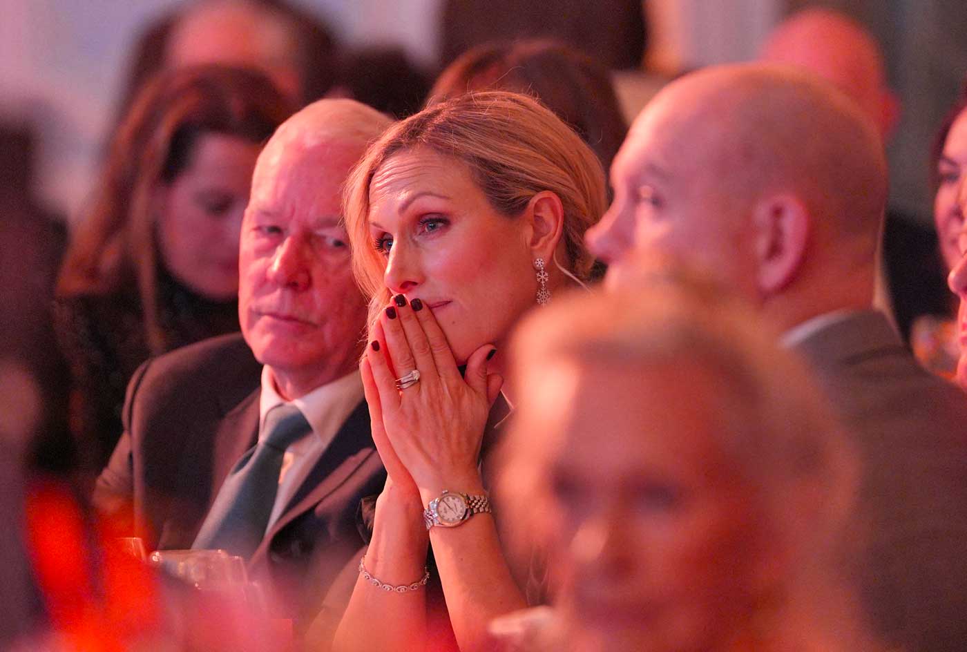 Zara Tindall, fille de la princesse Anne, est émue lors de la cérémonie présidée par son cousin William (Photo : Yui Mok/PA Wire/ABACAPRESS.COM)