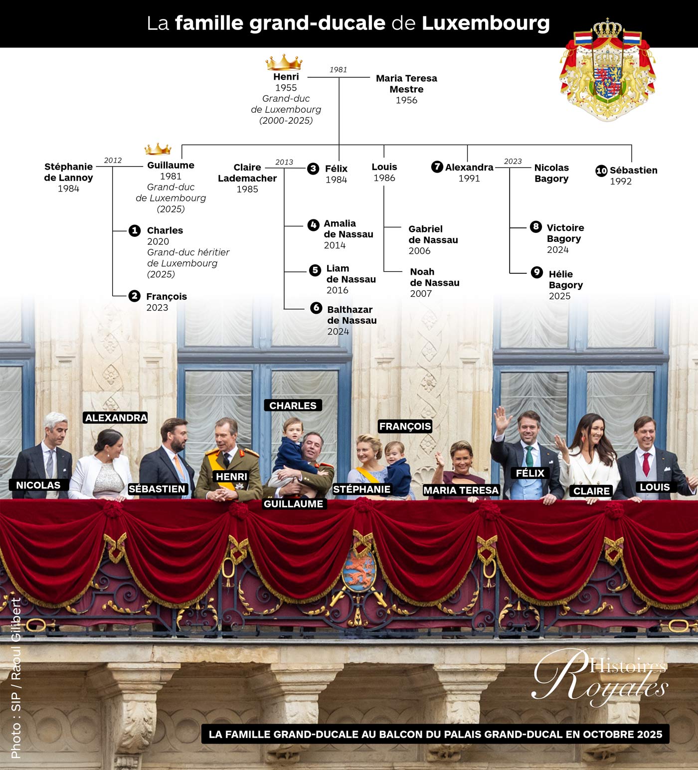 La princesse Alexandra, 34 ans, et Nicolas Bagory, 37 ans, se sont mariés civilement à Luxembourg le 21 avril 2023 et religieusement la semaine suivante à Bormes-les-Mimosas, dans le Var. Alexandra et Nicolas sont devenus parents d’une petite Victoire en mai 2024. Leur deuxième enfant, né le 17 octobre 2025, est un garçon prénommé Hélie.