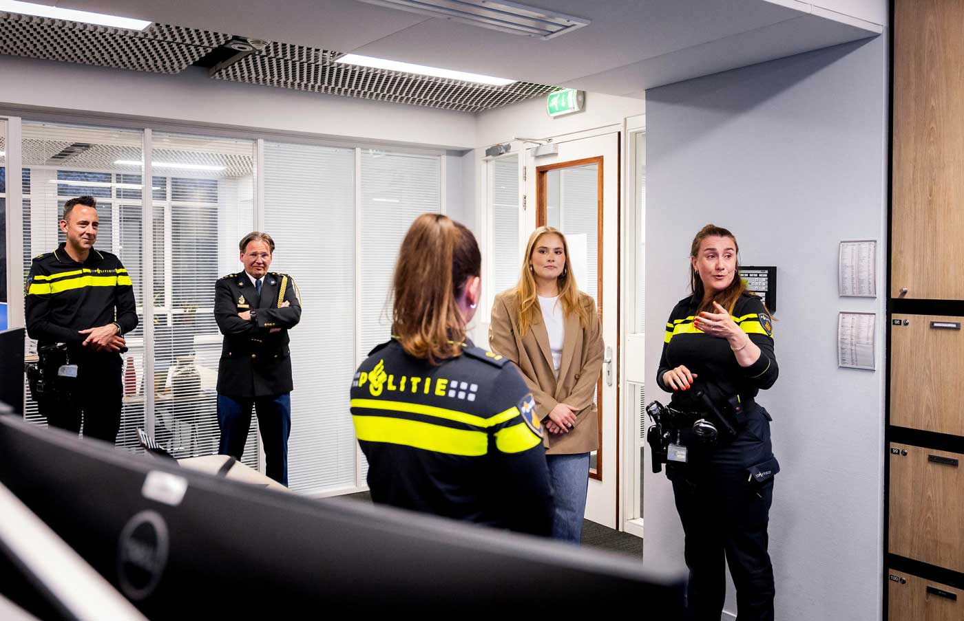 Ce vendredi soir, alors que cette deuxième journée de visite touchait à sa fin, la princesse Amalia a encore assuré un dernier engagement. La fille aînée du roi Willem-Alexander et de la reine Máxima s’est rendue au commissariat de police pour observer les activités nocturnes des forces de l’ordre. La princesse Amalia a notamment visité le centre d’appels d’urgence. Ici, des opérateurs répondent aux appels des citoyens 24 heures sur 24, et doivent réagir rapidement à des situations très différentes. En même temps qu’ils reçoivent les appels, ces opérateurs doivent aussi envoyer des agents sur le terrain et leur donner des instructions.