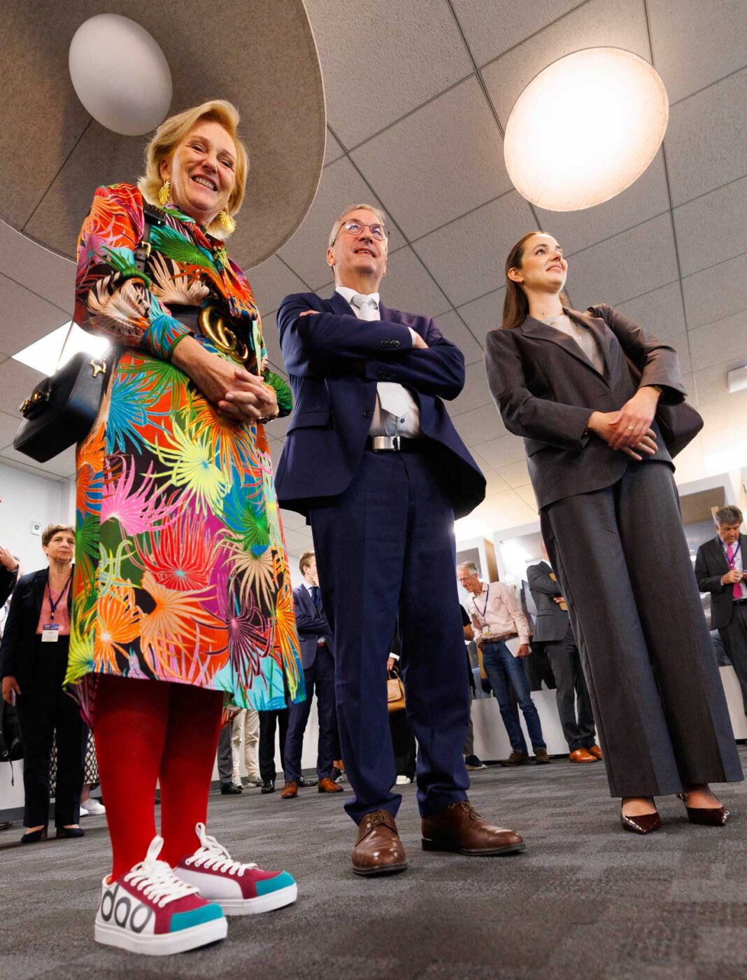 La princesse Astrid porte les baskets Odoo lors de sa visite dans l’entreprise belge Odoo implantée aux États-Unis (Photo : ABACAPRESS.COM)