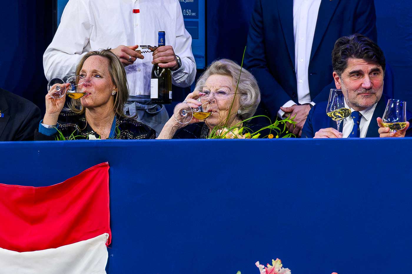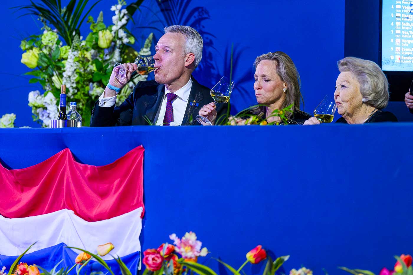 Comme presque chaque année, la princesse Beatrix, qui fêtera ses 88 ans la semaine prochaine, accompagne sa nièce à cet événement. Ce samedi avaient lieu plusieurs épreuves d’obstacles et la remise du prix RAI Amsterdam. Les deux princesses, très expressives tout au long de la compétition, ont partagé quelques verres de vin blanc dans la tribune.