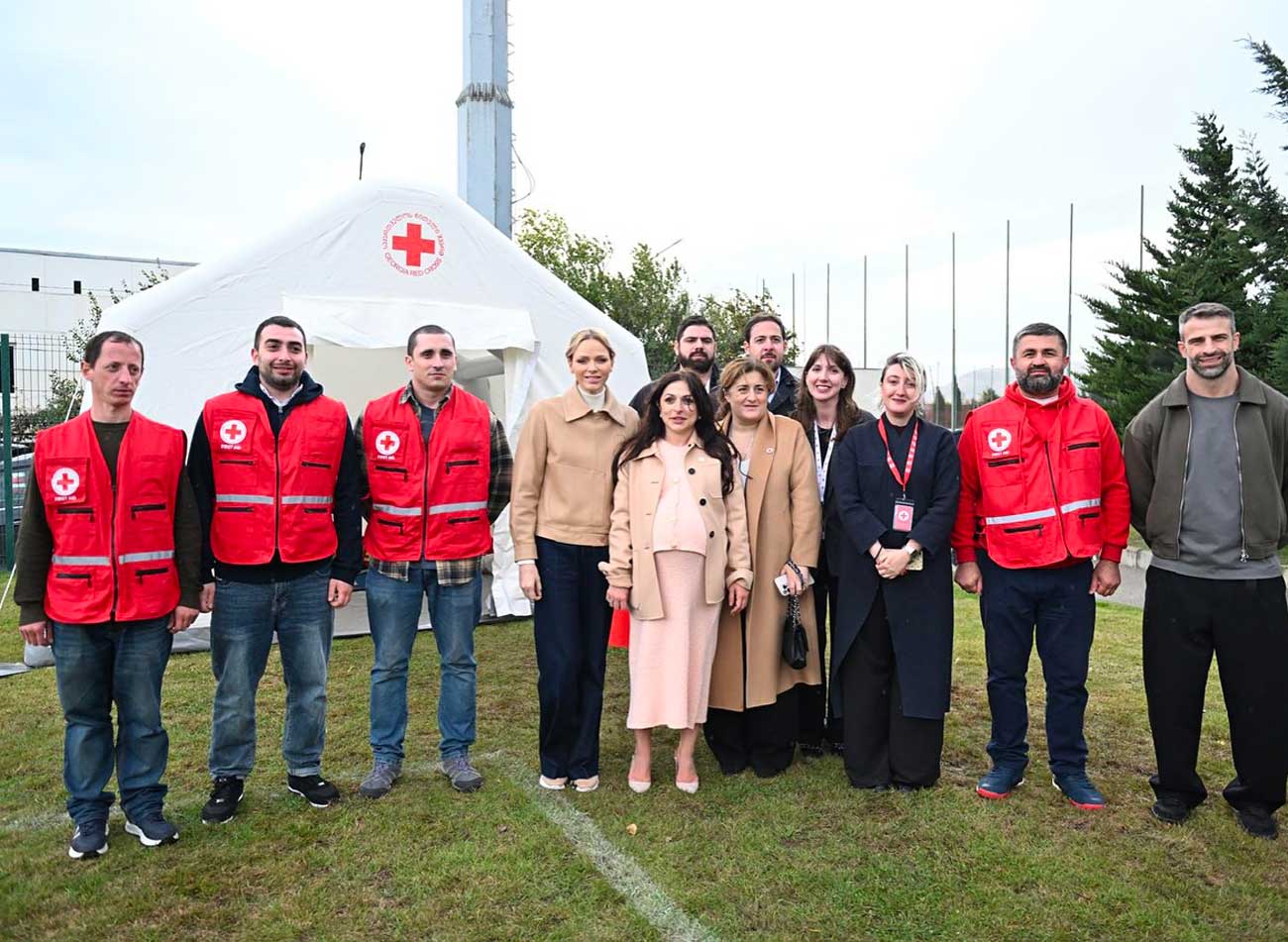 La princesse Charlène voyageait aussi dans le cadre de ses fonctions de vice-présidente de la Croix-Rouge monégasque. Un atelier de formation aux premiers secours était aussi organisé par la Croix-Rouge géorgienne, en marge du stage de rugby. Le Palais princier souligne que cette formation aux premiers secours était organisée en collaboration avec la Fondation Princesse Charlène, dont Gareth est le secrétaire général.