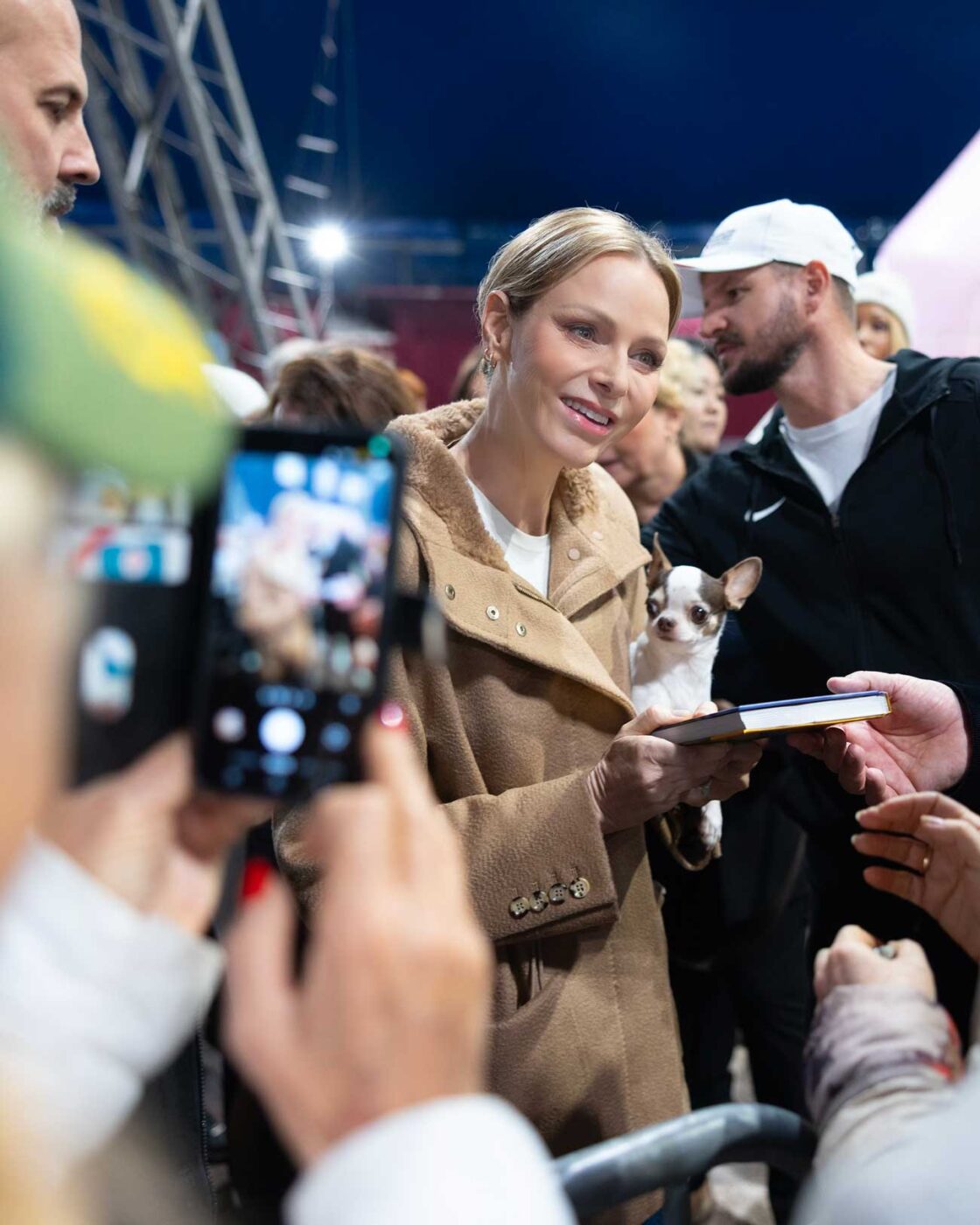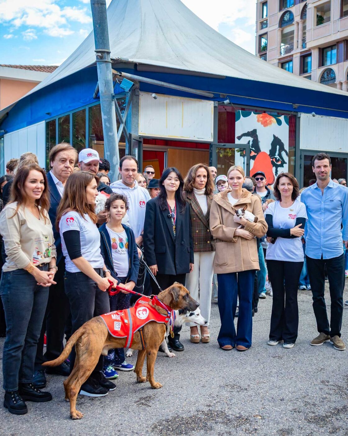 La princesse Charlène, qui a soutenu l’événement en toute simplicité, a participé aux activités sans artifice, portant un jeans et une parka courte couleur camel de chez MaxMara. La princesse de Monaco a assisté à la parade des chiens à adopter, puis elle a visité les ateliers et les stands dédiés à la protection animale.