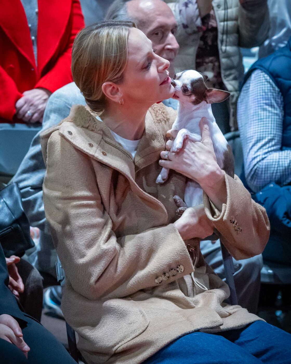 Moment de tendresse entre la princesse Charlène et son chihuahua Harley (Photo : Frédéric Nebinger / Palais princier)