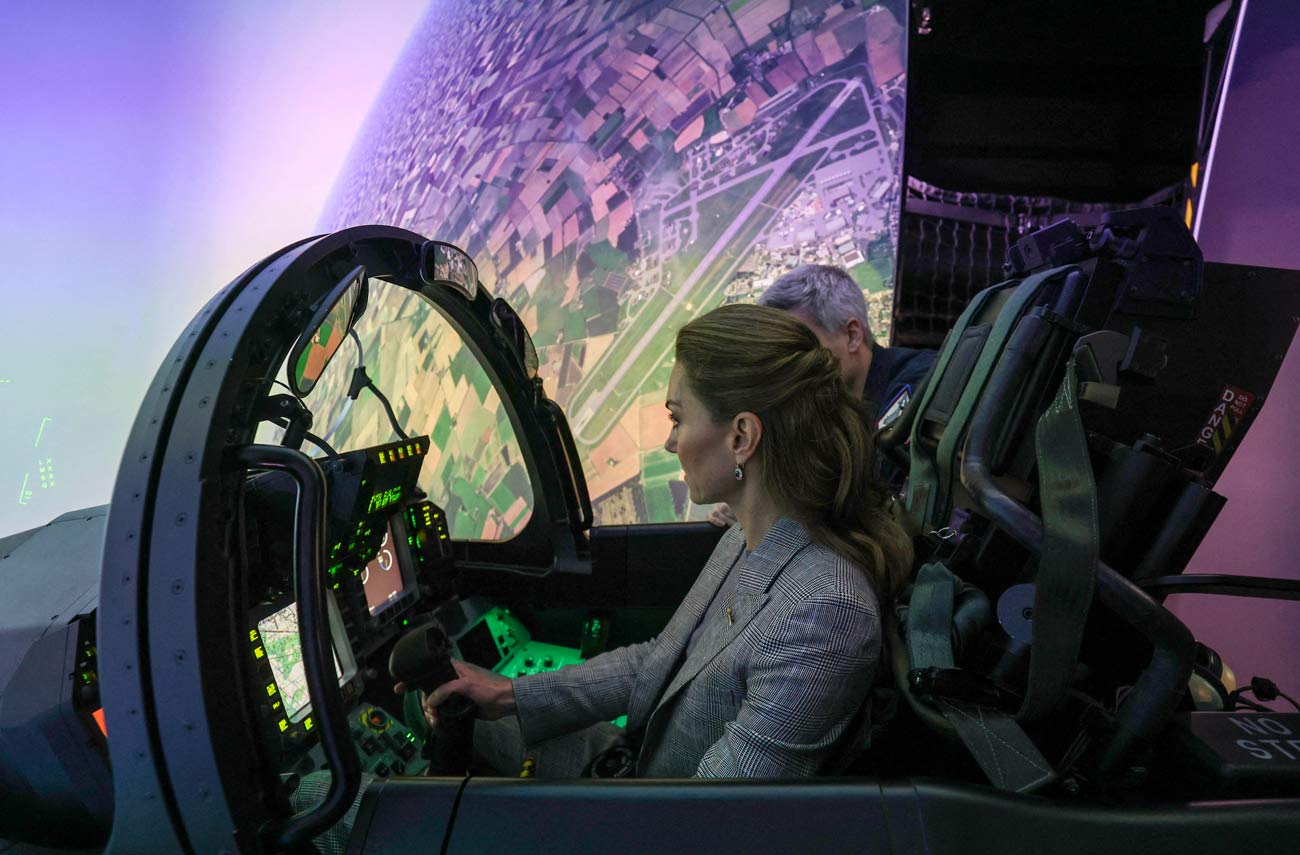 Lors de cette visite, la princesse Catherine est montée dans un simulateur de vol d’un Typhoon et a pu effectuer un looping. Cette base aérienne abrite les avions Typhoon qui protègent l’espace aérien britannique. L’épouse de l’héritier du trône a rencontré le personnel de la base aérienne ainsi que les familles des militaires, après avoir été informée des récentes opérations de la Royal Air Force. Une unité en poste à Coningsby revient d’une mission de soutien à l’OTAN en Pologne.