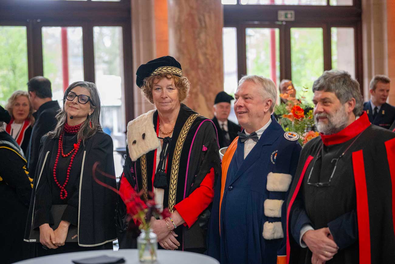 Francesca Albanese a donc reçu un doctorat honoris causa pour mérite général de la part des trois universités. D’autres doctorats honorifiques ont été décernés par l’université d’Anvers. L’un en médecine et sciences de la santé à la pneumologue Wanda de Kanter, un autre en études du développement à la professeure des droits de l’homme Noura Eraka. Un doctorat honoris causa en sciences de l’apprentissage et technologies éducatives a été remis à la professeure Sanna Järvelä et enfin, un dernier doctorat honorifique a été remis en sciences pharmaceutiques, biomédicales et vétérinaires à la professeure de toxicologie Juliette Legler.