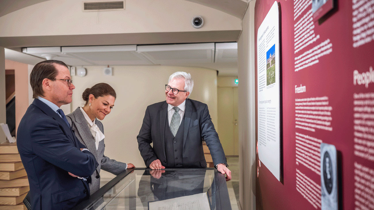La fille et le beau-fils du roi Carl XVI Gustaf visite une exposition qui retrace l’histoire du parlement (Photo : Linnea Bengtsson/Sveriges riksdag)