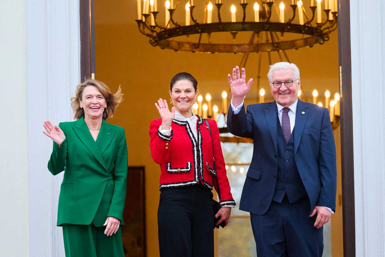 Le 18 novembre, la princesse héritière Victoria a également été reçue au château de Bellevue, la résidence officielle du chef de l’État. Le président fédéral allemand Frank-Walter Steinmeier a invité chez lui la fille aînée du roi Carl XVI Gustaf. Le président était accompagné de son époux, Elke Büdenbender.