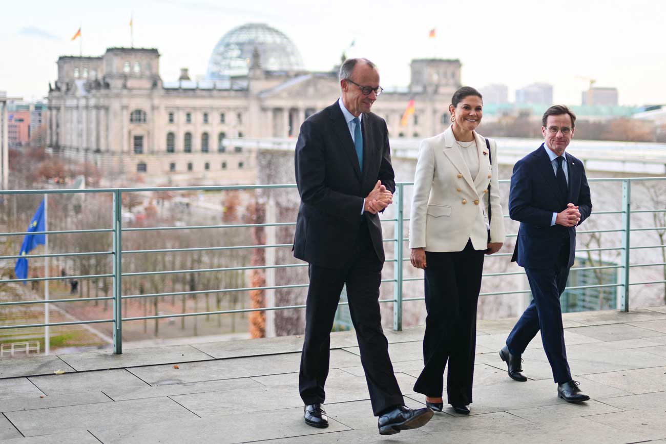 Ce mercredi 19 novembre, la princesse héritière Victoria a rencontré le chancelier allemand Friedrich Merz à la Chancellerie. Victoria était accompagnée du premier ministre suédois Ulf Kristersson. La Chancellerie fédérale occupe un impressionnant bâtiment dessiné par les architectes Axel Schultes et Charlotte Frank. Le chancelier Merz a emmené ses invités à l’étage. La terrasse offre une superbe vue sur le Tiergarten.