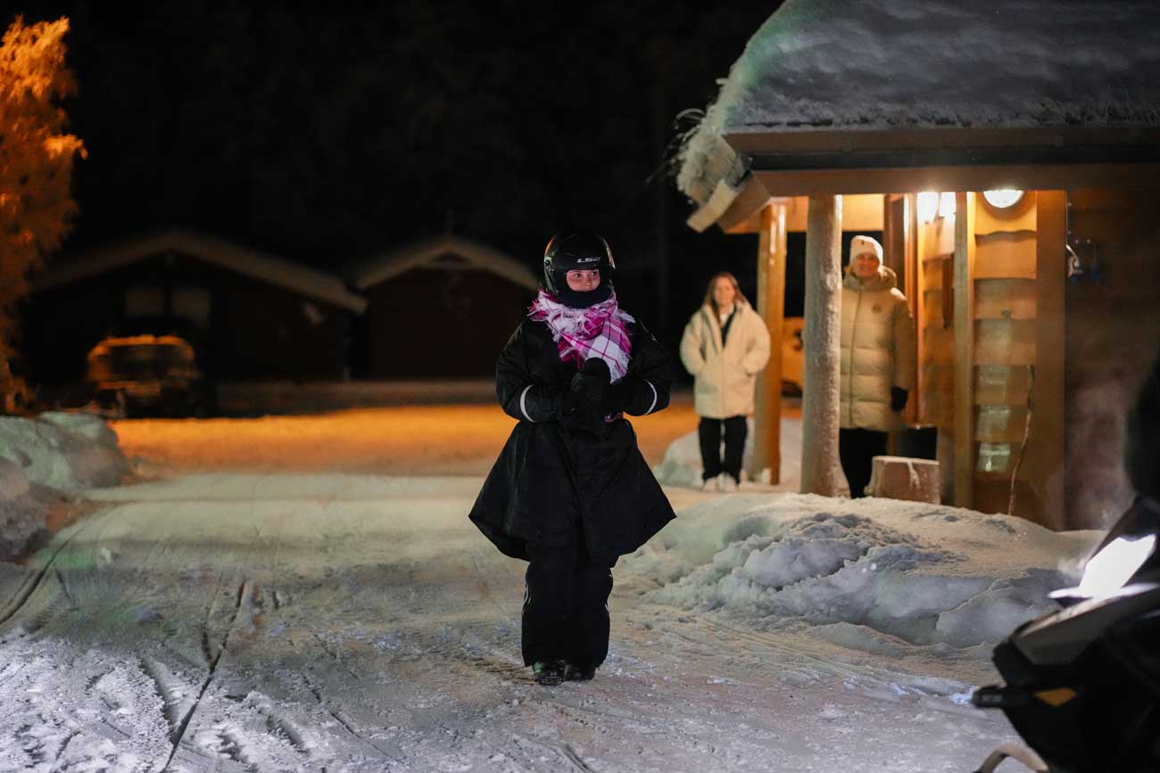Après son arrivée à Karasjork, dans le comté de Finnmark, la princesse Ingrid Alexandra a rejoint en motoneige le parc national d’Anárjohka, où se trouve le refuge Jergul Astul, non loin de la frontière finlandaise (Image : Histoires Royales)