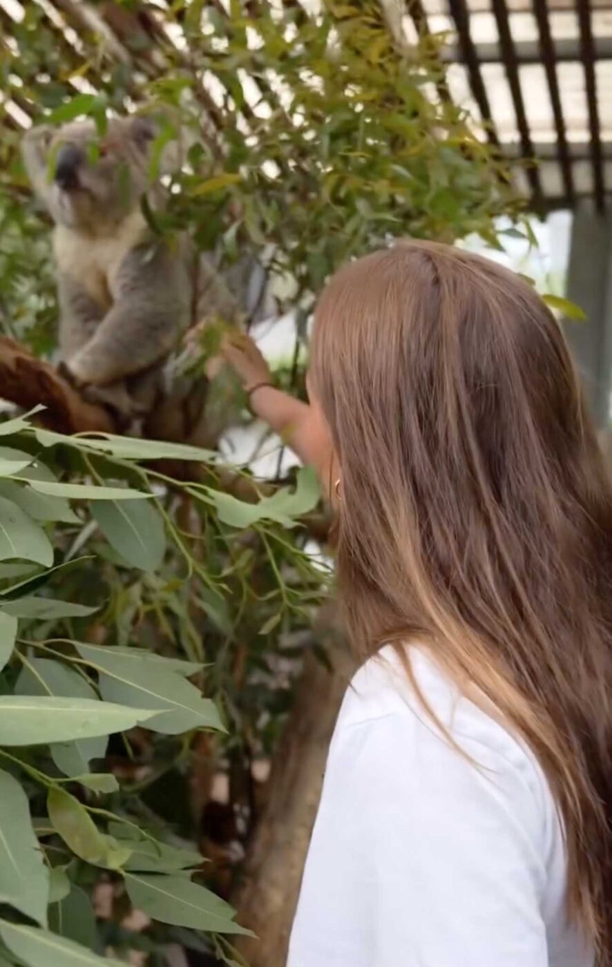 La petite-fille du roi Harald V approche le koala Humphrey (Photo : Capture Det kongelige hoff)