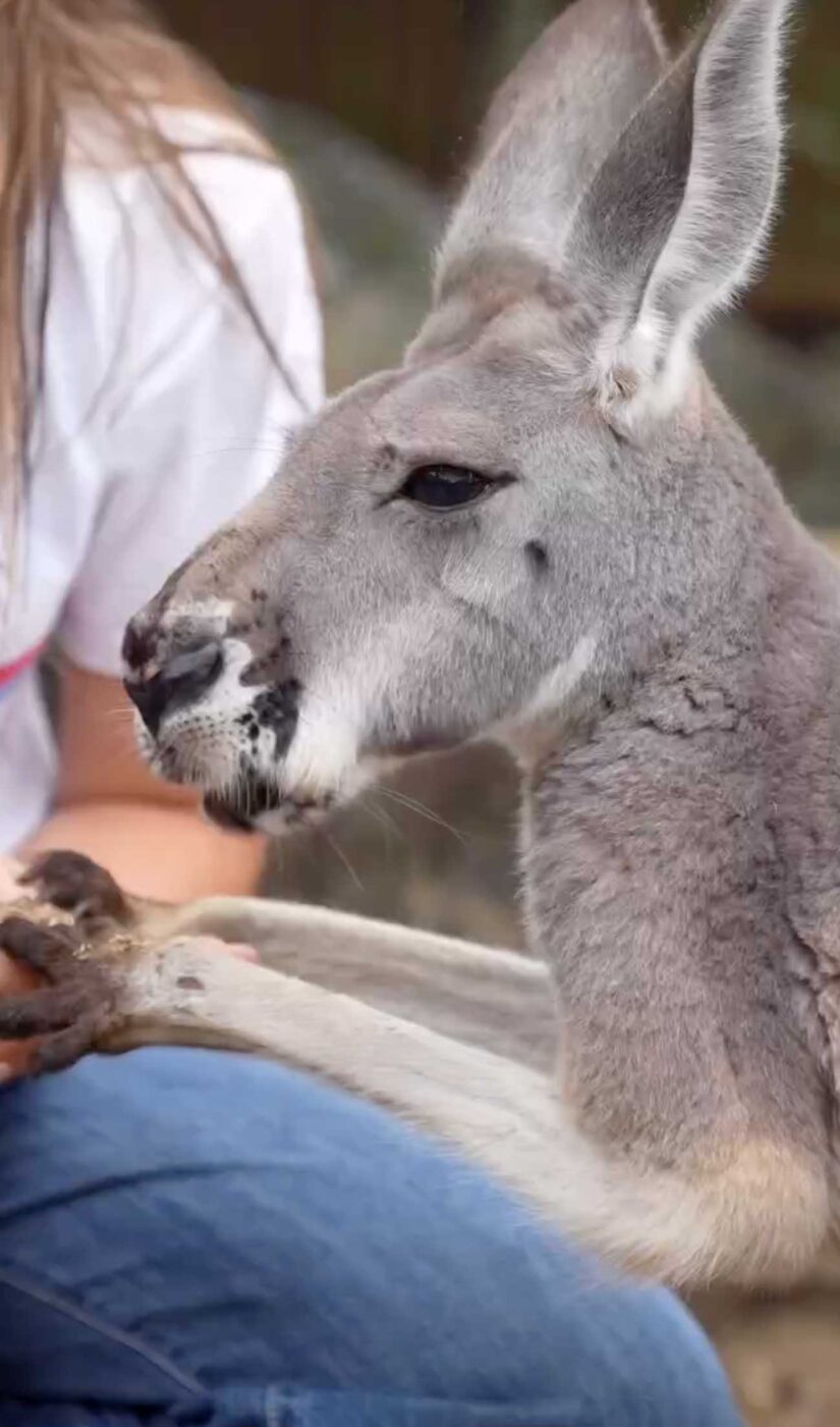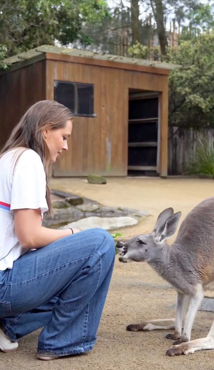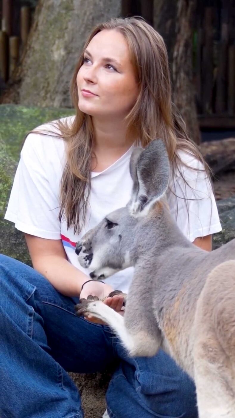 Pip le kangourou vient manger dans la main de la future reine de Norvège (Photo : Capture Det kongelige hoff)