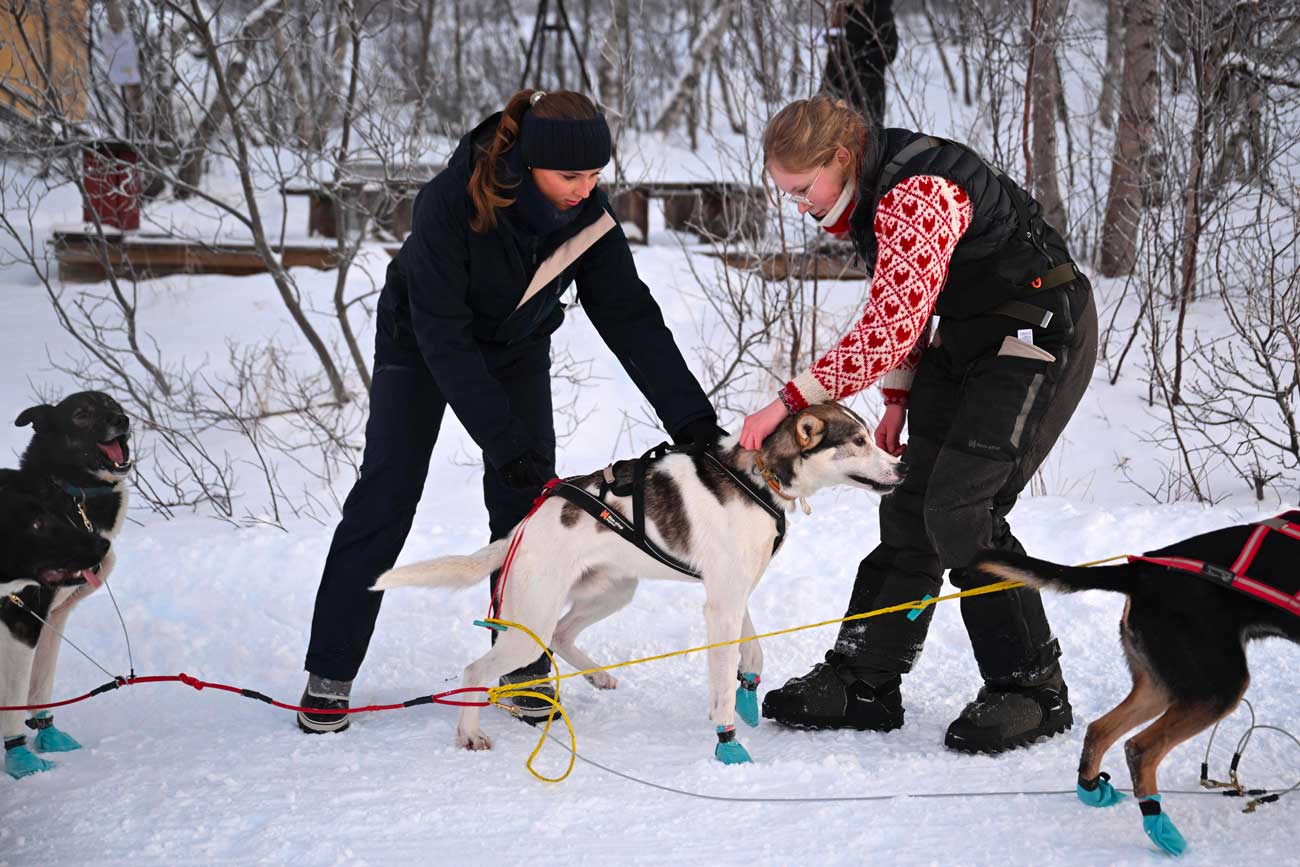 Ce mardi 27 janvier 2026, la princesse Ingrid Alexandra a commencé sa journée à Kirkenes. Cette localité de 3 400 habitants est située à l’extrémité est de la Norvège, à proximité de la Russie. La princesse Ingrid Alexandra a fait la rencontre des chiens de traîneau qui allaient la tirer tout au long de la journée. La princesse a aidé à attacher les chiens et à préparer le traîneau.
