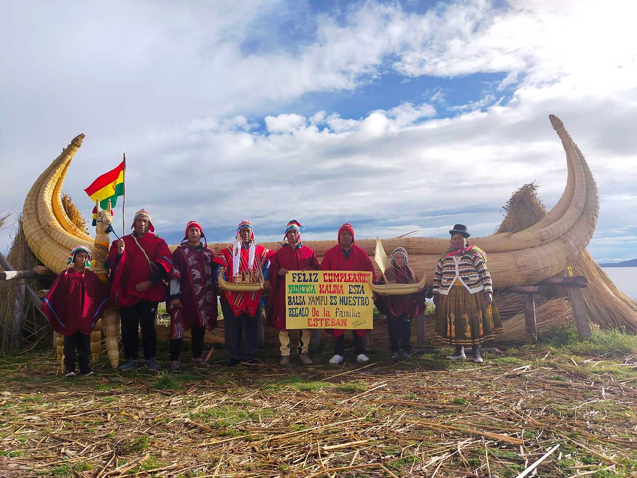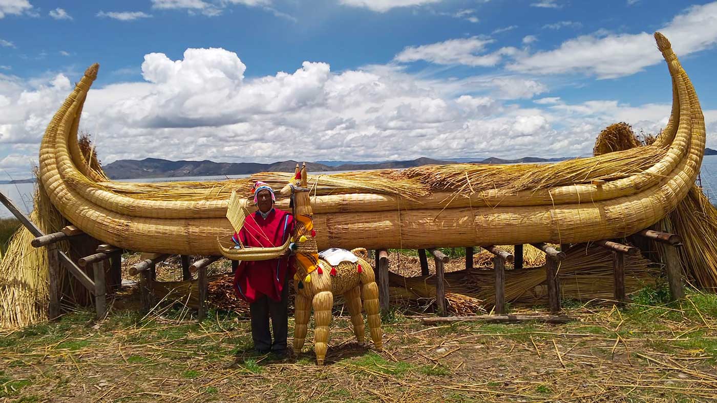 La famille Esteban vient de terminer la confection du radeau Yampú à bord duquel la famille effectuera sa première grande expédition à trois. Le radeau, financé par Kitín et Kalina, a été réalisé en totora, un type de roseaux utilisé traditionnellement pour tresser les embarcations au Pérou et en Bolivie. Selon la légende, Manco Cápac et Mama Ocllo, enfants du dieu soleil Inti, auraient émergé de l’écume du lac Titicaca à bord d’un radeau de roseaux totora avec la mission d’apporter la civilisation aux hommes après le grand déluge. De là est née la culture inca.