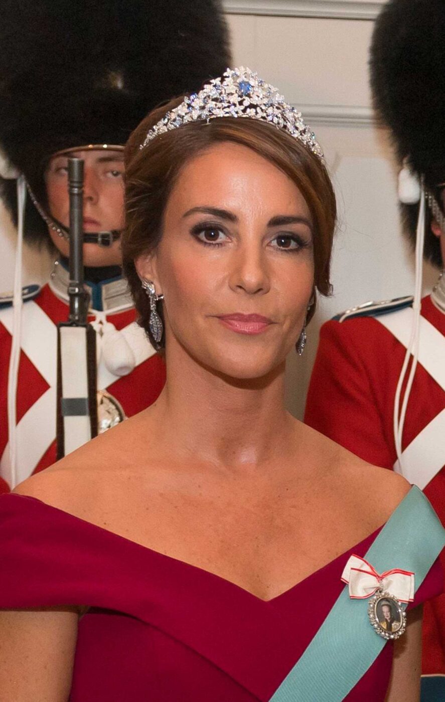 On ne pouvait pas manquer le diadème que portait Marie, un diadème qui avait fait couleur beaucoup d’encre lorsqu’elle l’avait porté pour la première fois en 2018. Il s’agit d’un bijou symbolique, créé pour elle par le joaillier français Mauboussin. La princesse Marie a également participé à la création de ce diadème en or blanc, serti de diamants et de saphirs. Il comprend un plus gros saphir poire de Ceylan de 6,82 carats en son centre.