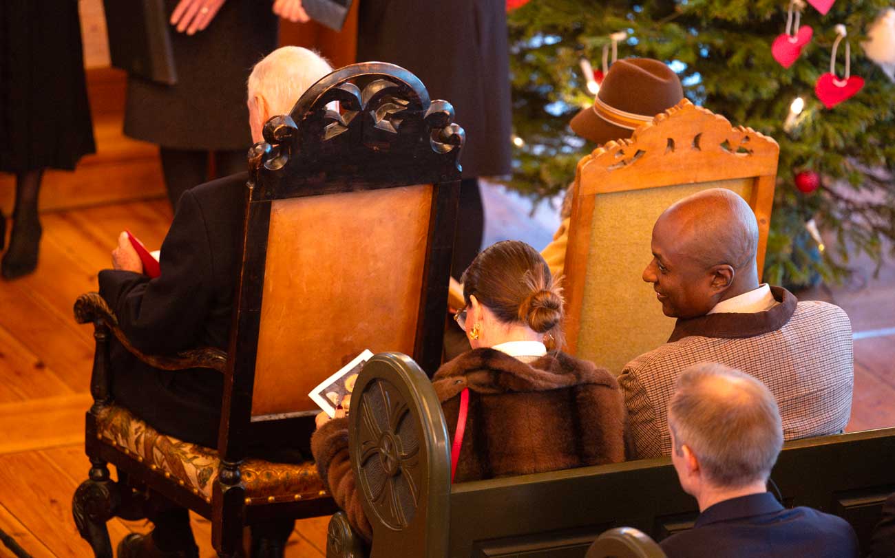 Dans la chapelle, l’esprit de Noël est descendu sur les fidèles avec le cantique « Venez maintenant avec louanges ». L’Évangile du jour de Noël, relatant l’incarnation de Dieu, a servi de point de départ au sermon, tiré de l’Évangile selon Jean, chapitre 1, versets 1 à 14 : « Au commencement était la Parole. La Parole était avec Dieu, et la Parole était Dieu. » La famille héritière, quant à elle, a assisté à l’office de minuit, à à l’église d’Uvdal.