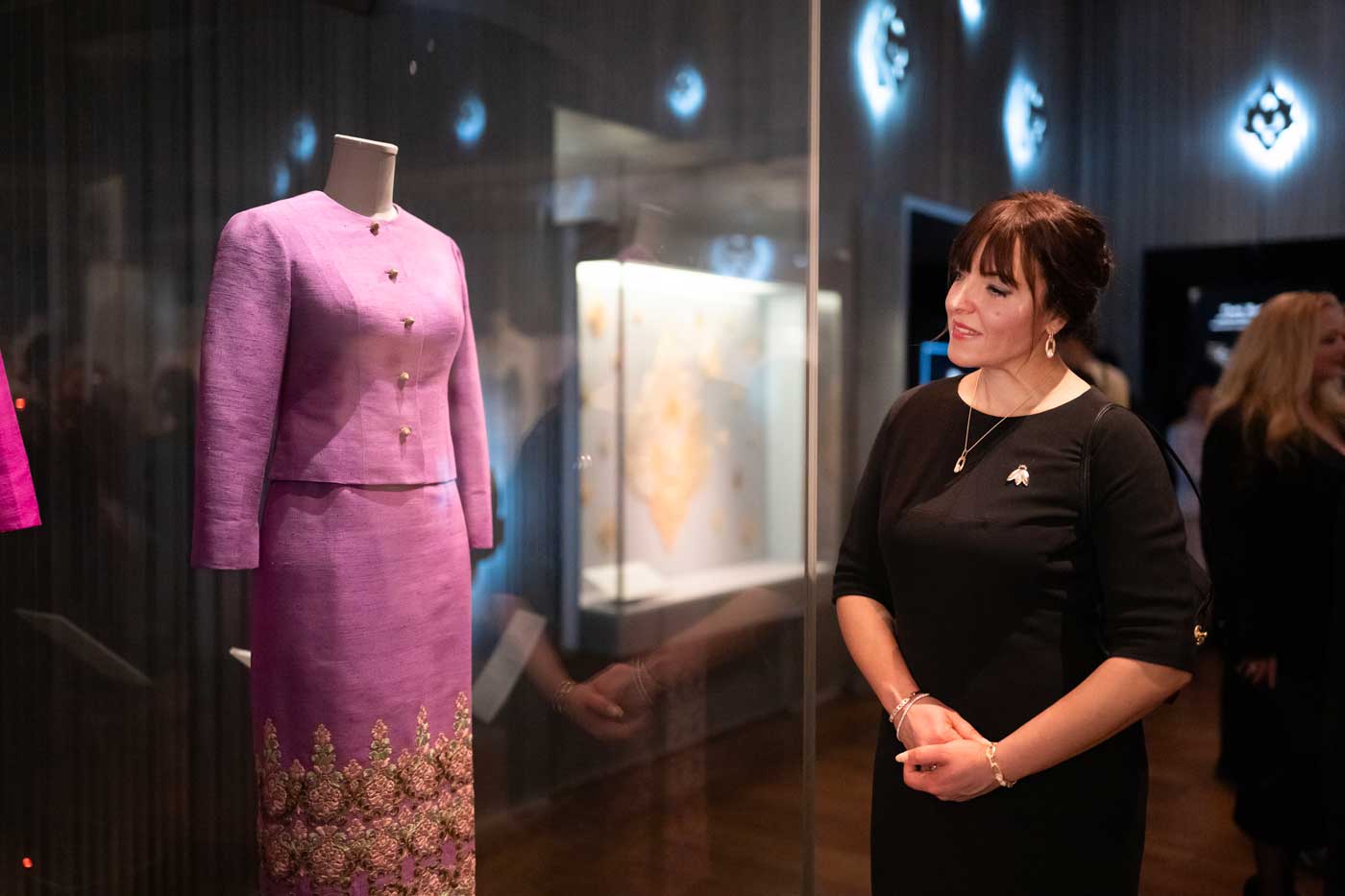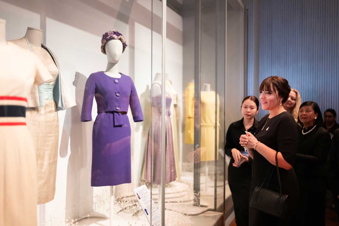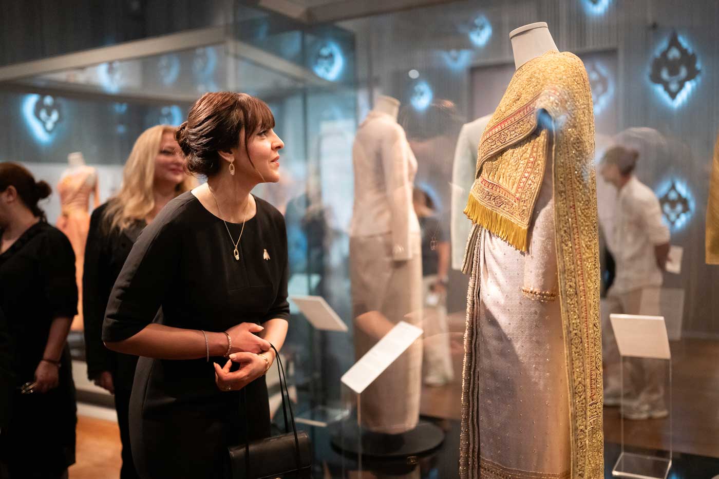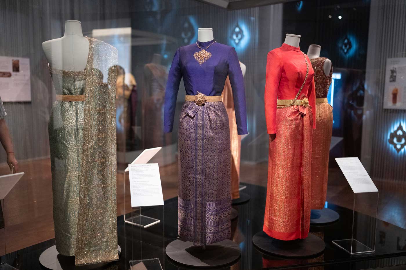 L’exposition comprend aussi des pièces de la garde-robe personnelle de la reine Sirikit, connue pour son élégance. L’exposition a été installée en 2022, à l’occasion de son 90e anniversaire. Cette partie de l’exposition « retrace l’histoire de son dévouement et de son engagement de toute une vie pour la préservation et la promotion des textiles thaïlandais », explique le musée. Ici aussi, on y voit un lien entre la France et la Thaïlande. La reine Sirikit avait chargé Pierre Balmain de lui confectionner les tenues qu’elle portait lors de ses déplacements à l’étranger, principalement en Occident.