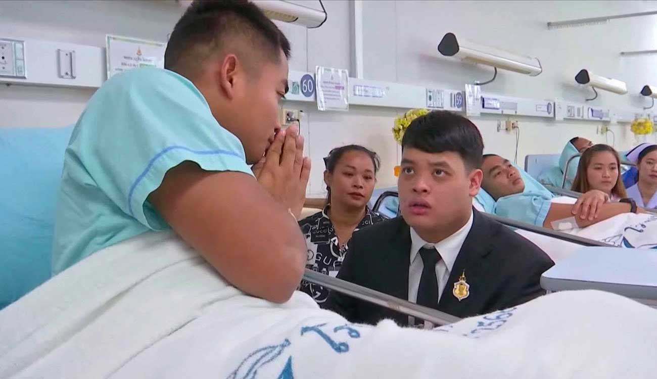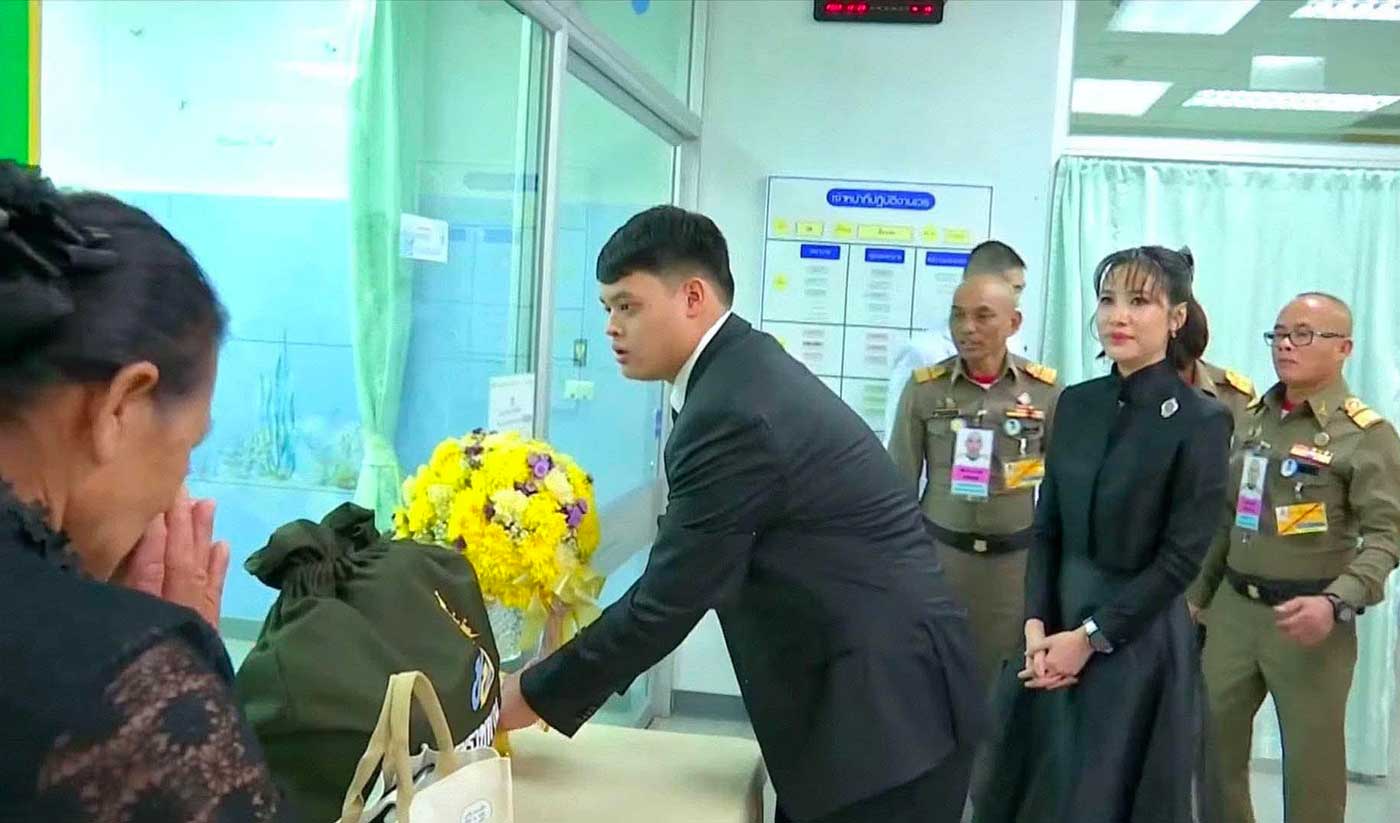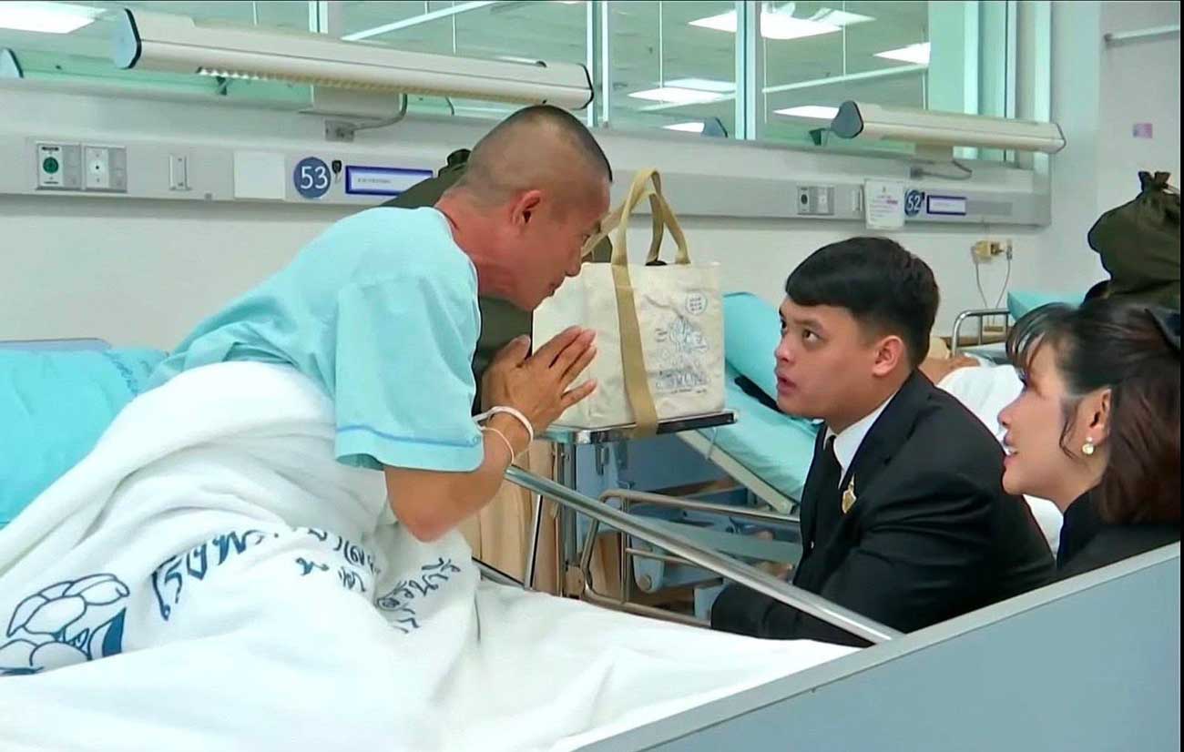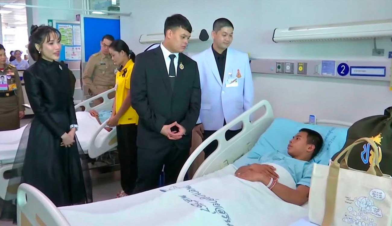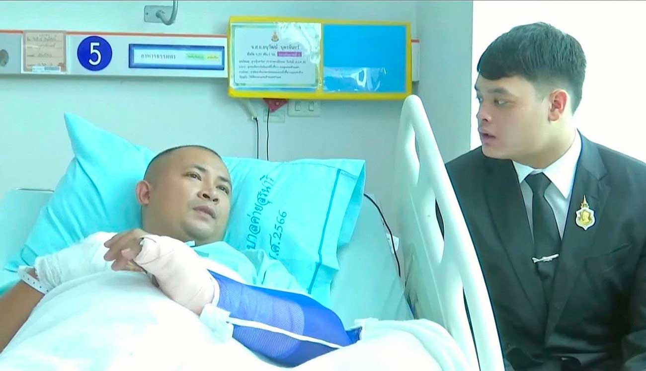 Le prince Dipangkorn s’est rendu à l’unité de soins intensifs pour rencontrer trois soldats blessés au combat, principalement par des éclats d’obus, et souffrant de blessures au visage nécessitant une assistance respiratoire. Le Bureau de la Maison royale explique que le prince « a adressé des paroles d’encouragement et de soutien sincère aux soldats et à leurs familles, leur apportant une immense joie ». Le fils du Roi s’est ensuite rendu à l’infirmerie pour rendre visite à 67 soldats blessés. La plupart avaient été blessés par des éclats d’obus, mais leur état s’est amélioré, indique le communiqué du département des relations publiques du gouvernement (PRD). Cette visite pourrait indiquer que le roi Maha Vajiralongkorn souhaite à présent former son fils et pourquoi pas lui offrir un rôle actif au sein de la famille royale.