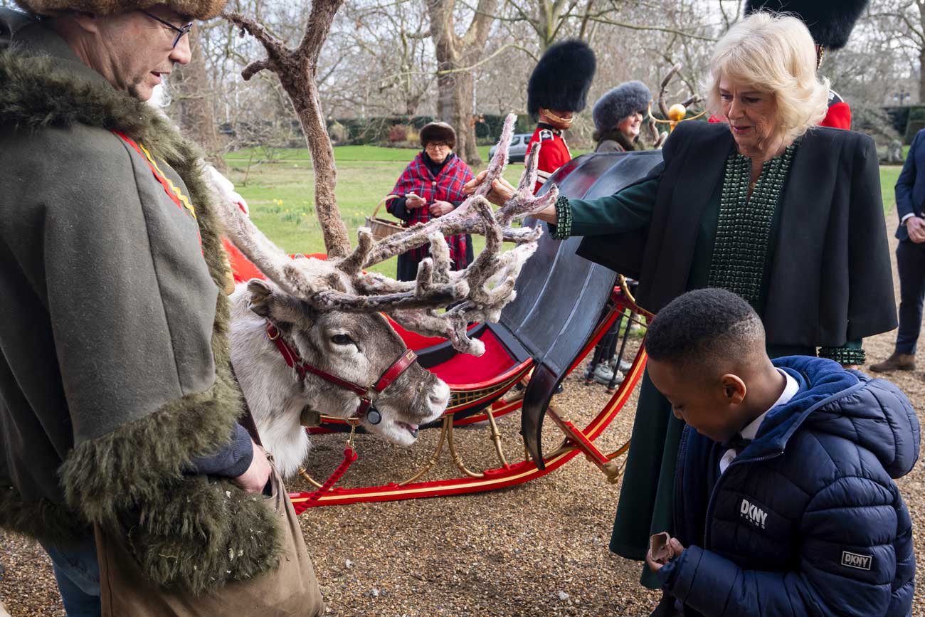 La décoration du grand sapin de Noël de Clarence House est réservée depuis plusieurs années aux enfants malades bénéficiaires de deux associations soutenues par la reine Camilla. Cette année encore, la reine Camilla avait invité des rennes et le Père Noël pour rendre ce moment encore plus magique.