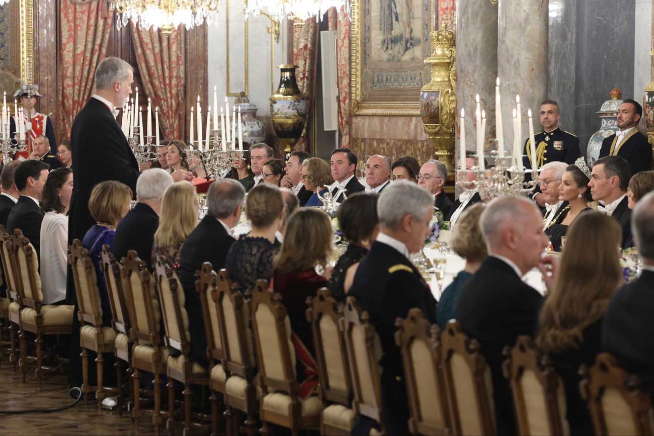 Comme le veut la tradition, le roi Felipe VI et la reine Letizia avaient organisé un somptueux banquet d’État en l’honneur de leurs invités allemands. Le président Steinmeier et son épouse ont partagé un dîner avec les souverains espagnols dans la salle du Trône du palais royal. L’unité musicale de la Garde royale a assuré l’animation musicale du dîner avec une sélection de morceaux rendant hommage aux deux pays, avec du Beethoven et du Wagner au programme.