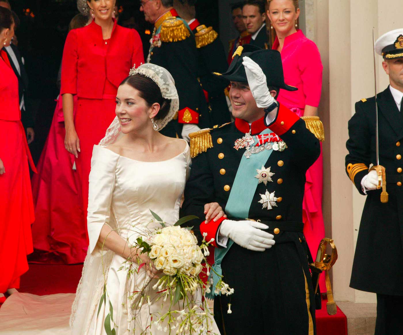 Le 14 mai 2004, le prince héritier Frederik de Danemark épousait la publicitaire australienne Mary Donaldson, vêtue d’une robe conçue par le créateur danois Uffe Frank. Ce jour-là, la nouvelle princesse héritière portait pour la première fois un diadème. Le bijou était un cadeau de ses beaux-parents, la reine Margrethe et le prince Henri.