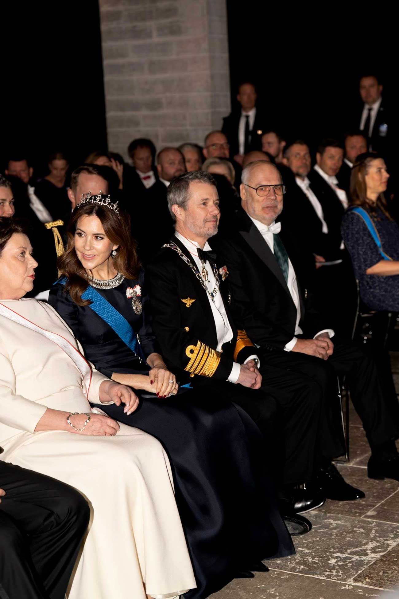 Le roi Frederik X et la reine Mary de Danemark ont conclu leur première journée en Estonie, en se rendant à un concert, puis en participant à un banquet d’État avec le président Alar Karis et son épouse. Pour l’occasion, le roi Frederik X portait le collier de l’ordre de Terra Mariana et la reine Mary avait fait l’honneur de porter son diadème de mariage.