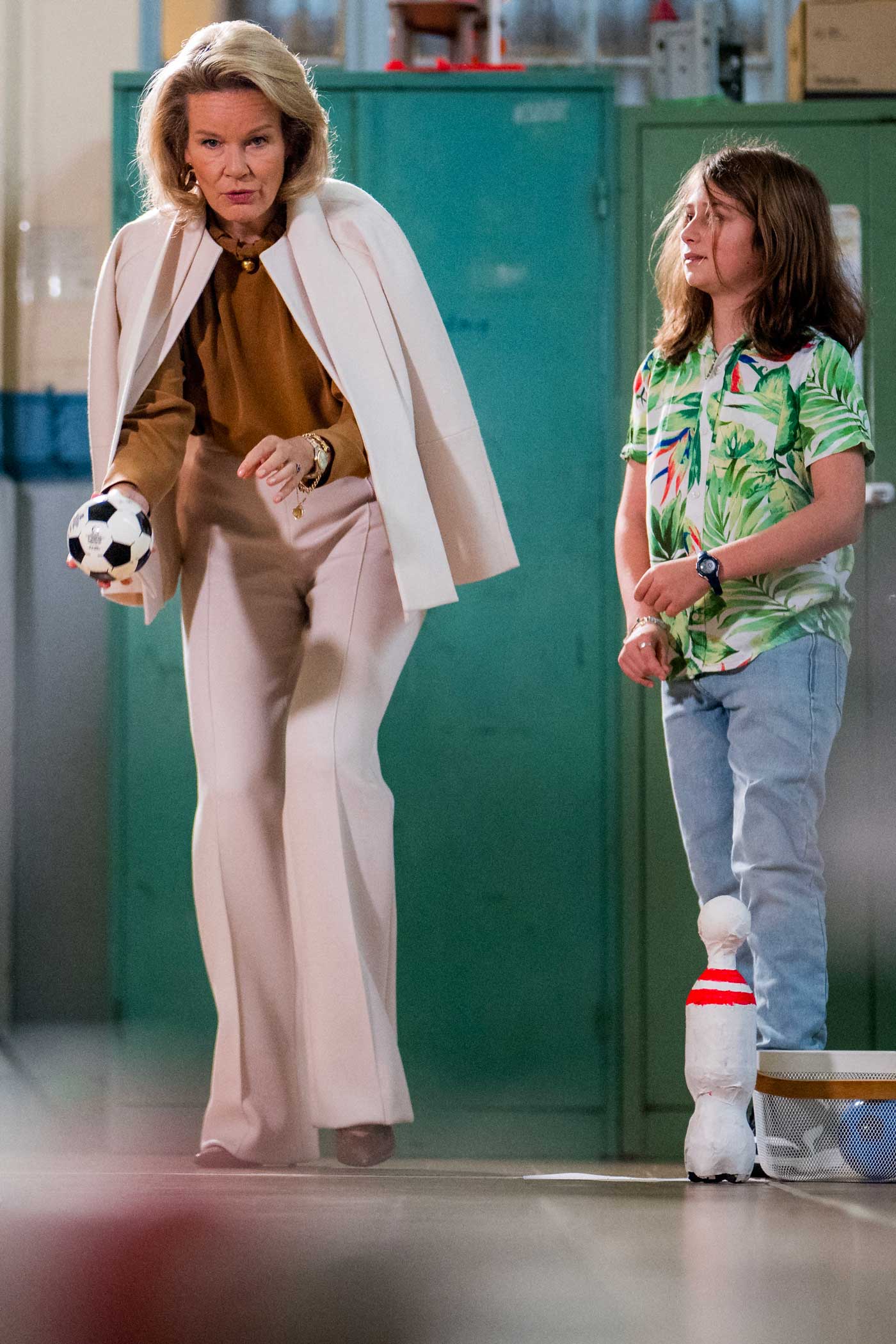 La visite coïncidait aussi avec la Journée mondiale de la santé mentale, qui tombe le 10 octobre. La santé mentale et le harcèlement sont deux thématiques intimement liées et qui sont tous les deux chères au cœur de la Reine. La reine Mathilde a d’abord échangé avec des enseignants en matière de harcèlement durant une vingtaine de minutes, puis elle a joué au bowling avec quelques enfants. Chaque quille symbolisait un terme lié au harcèlement ou une insulte.