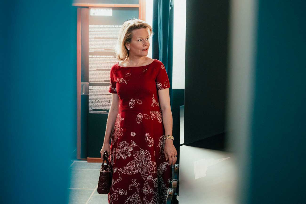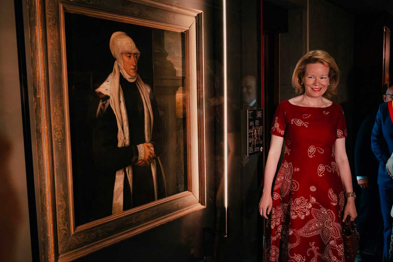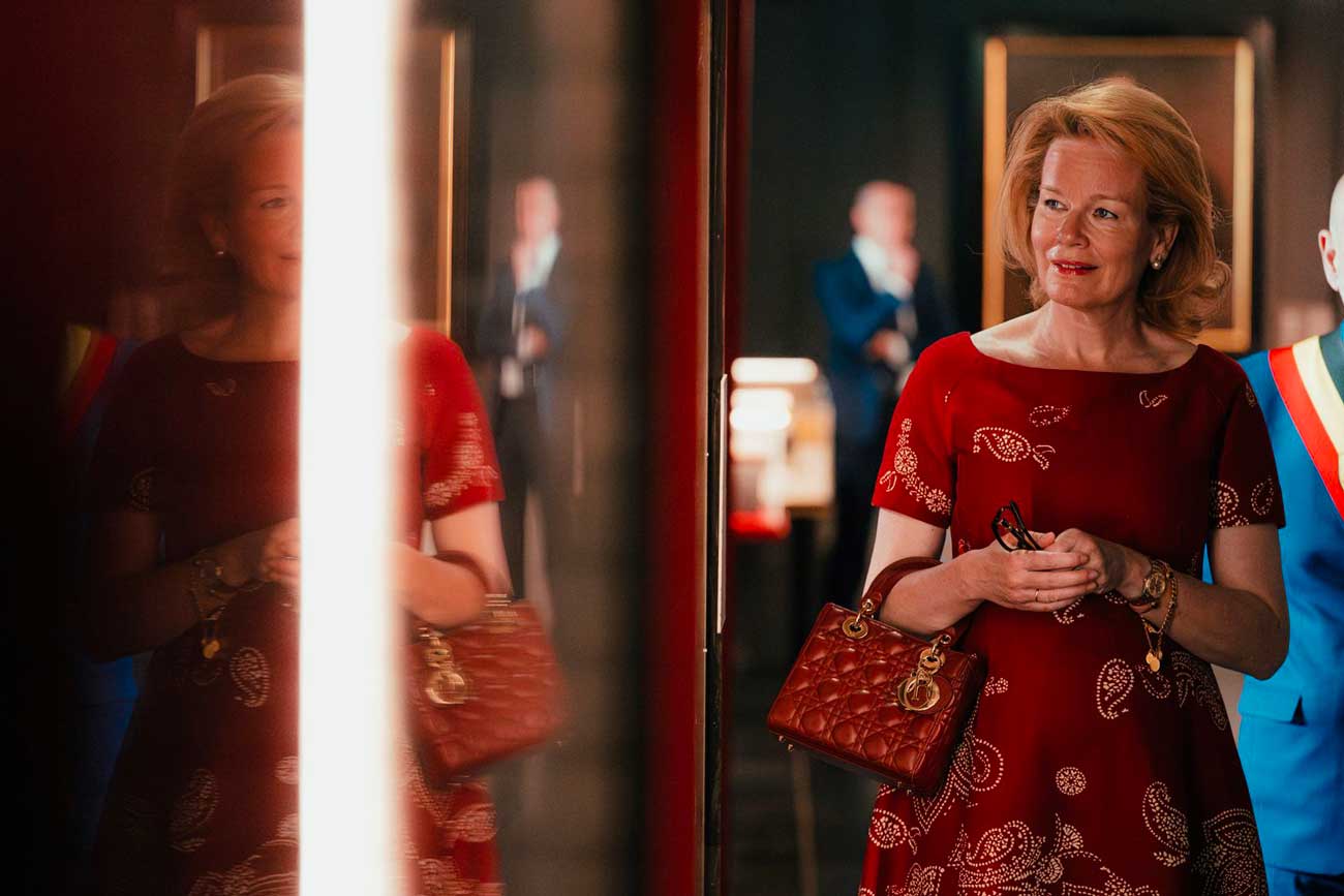 La reine Mathilde visite l’exposition consacrée à la reine Marie de Hongrie au Musée royal de Mariemont