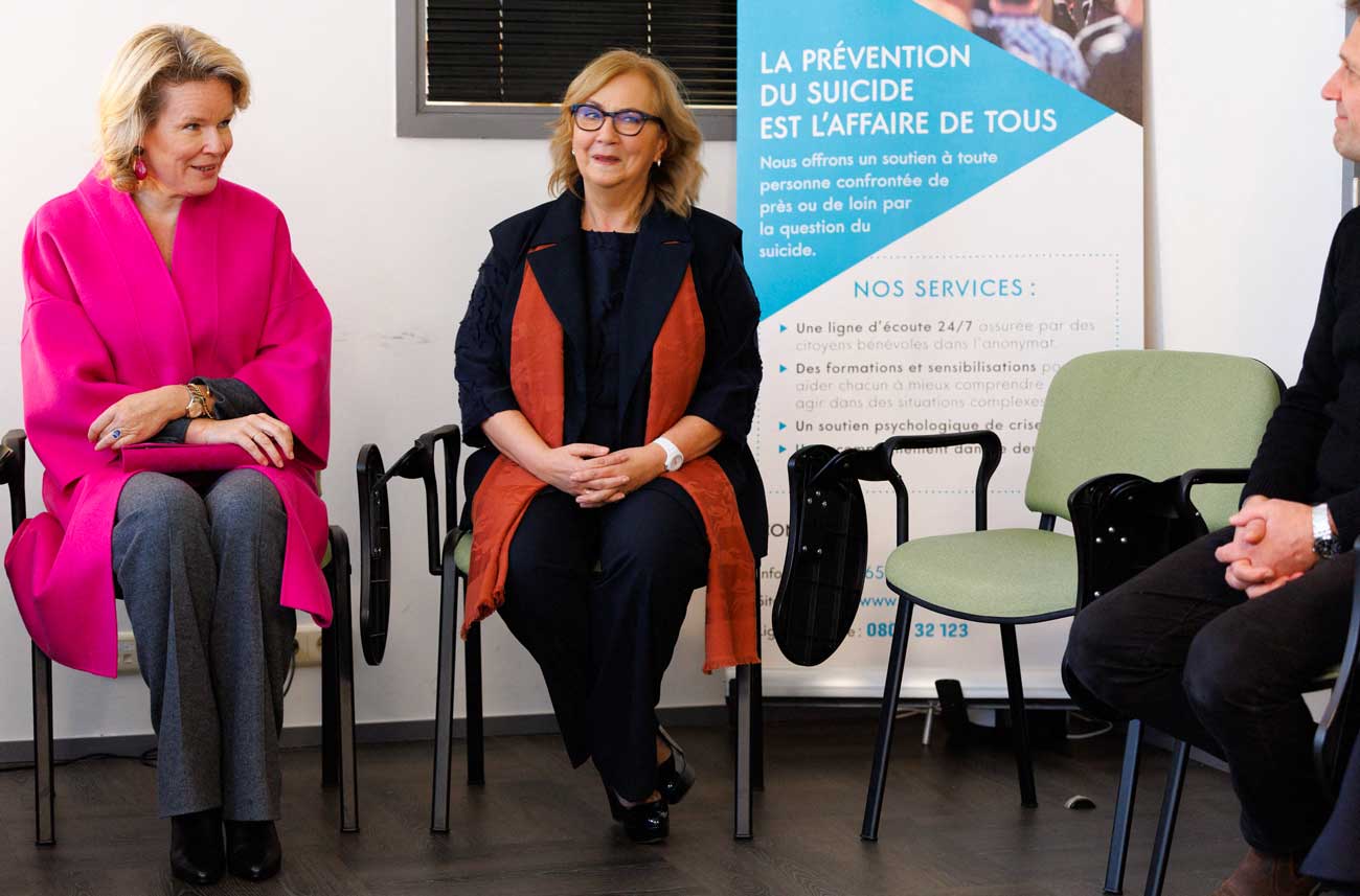 La reine Mathilde rencontre des collaborateurs du Centre de prévention du suicide et des patients ayant surmonté leur situation de détresse