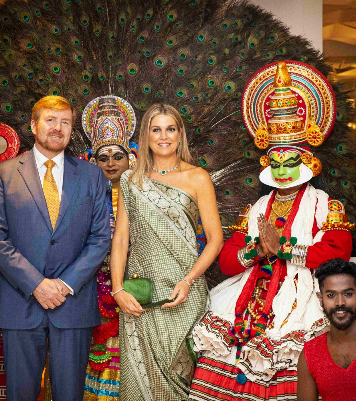 Pour assister à ce concert, la reine Máxima portait une robe de soirée particulière. La reine des Pays-Bas avait déjà porté cette création sur-mesure lors de sa visite d’État en Inde en 2019. La robe a été confectionnée par Jan Taminiau, le créateur néerlandais fétiche de la reine Máxima, en vue de son voyage en Inde.