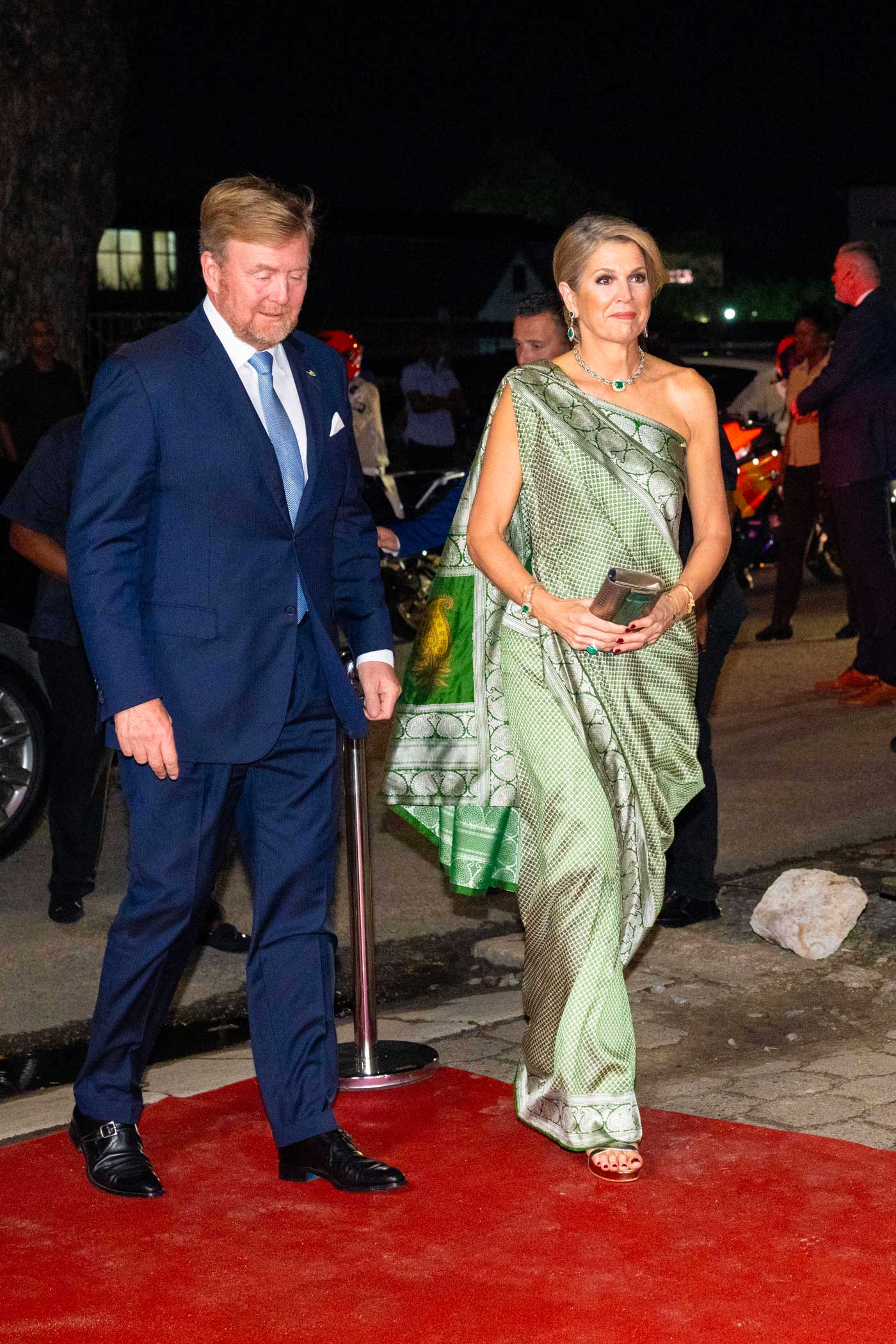 Le roi Willem-Alexander et la reine Máxima ont offert un concert à la présidente surinamaise et son époux, en conclusion de la deuxième journée de leur visite d’État au Suriname. Pour cette soirée de prestige, mettant à l’honneur la culture des deux pays, la reine Máxima portait une magnifique robe de soirée inspirée par un sari, créé sur mesure par son couturier préféré et assorti à ses bijoux en émeraude.