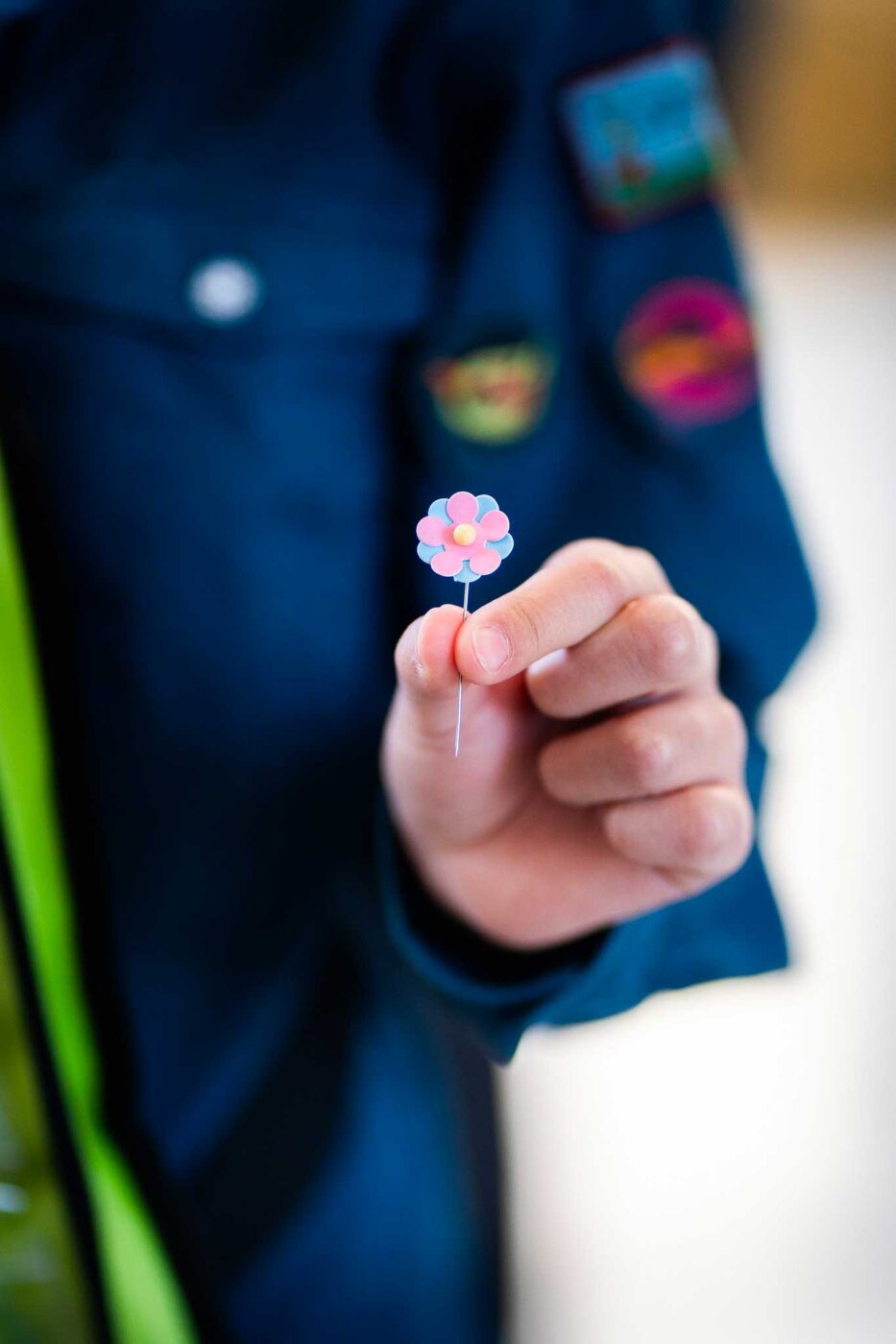En Suède la tradition du Majblomman, littéralement « la fleur de mai », est bien installée. Cette fleur printanière artificielle à dix pétales, qui change de couleur et de forme chaque année, est vendue pour la bonne cause. Cette année, la fleur est rose et bleue avec une perle jeune en guise de pistil. Elle a été conçue par Saga Laventzakis et Leia Sandell.