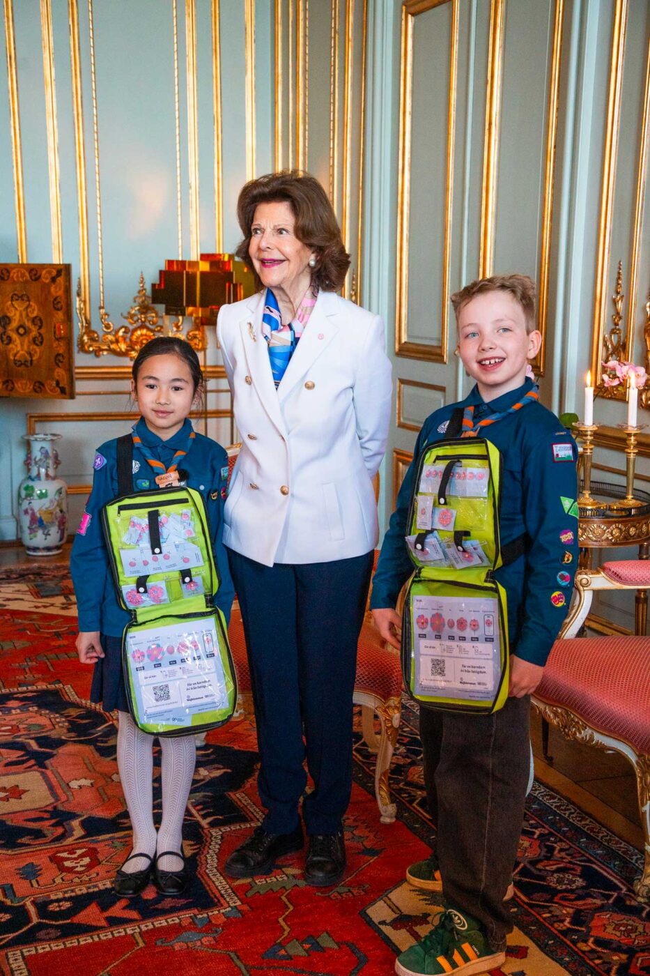 La reine Suède achète traditionnellement la première « fleur de mai ». Cette fleur artificielle, portée en pin’s, est vendue depuis 1907 au profit des enfants en situation de précarité. Ce 14 avril 2026, la reine Silvia a reçu des enfants au palais royal de Stockholm pour leur acheter une Majblomman.