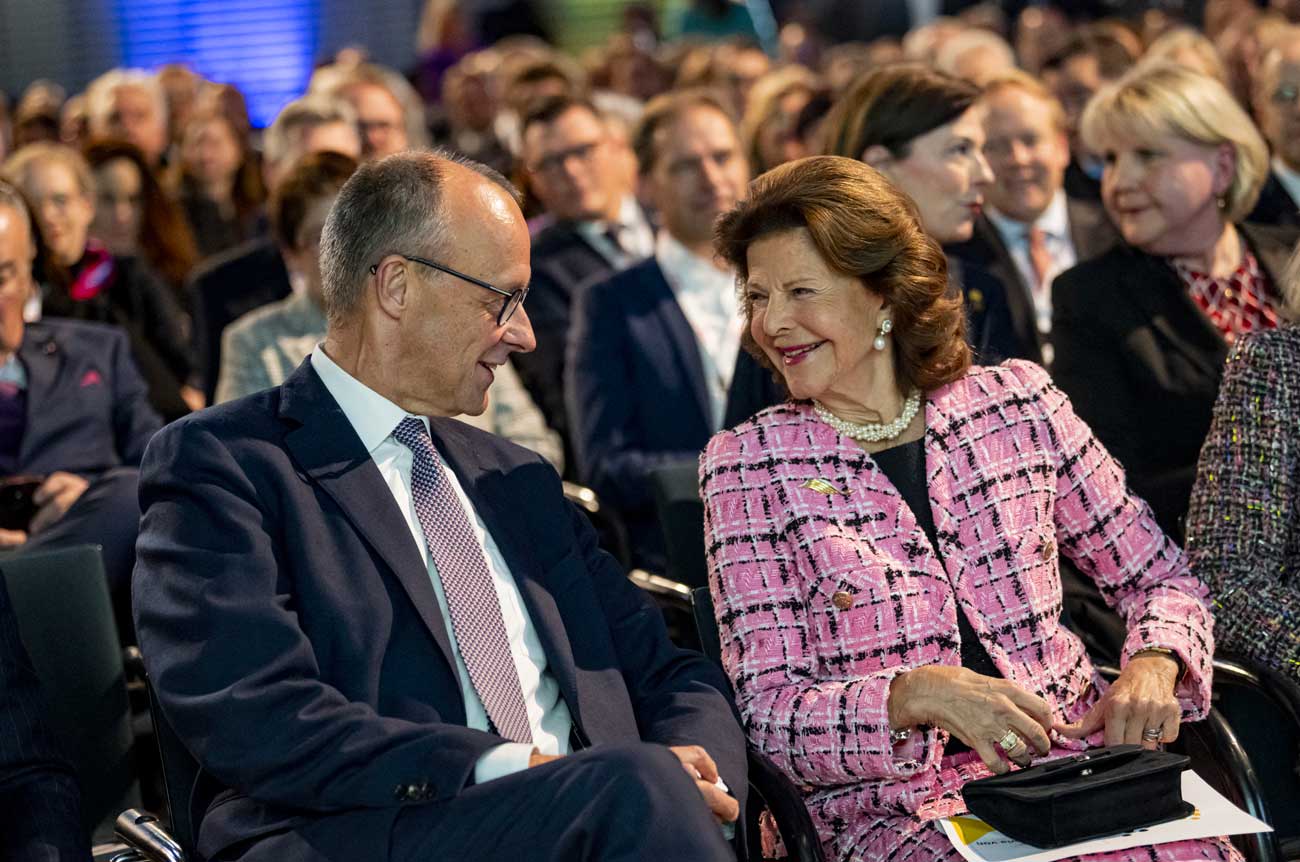 La reine Silvia de Suède, 81 ans, rentre fréquemment en Allemagne, son pays natal, où elle mène des activités caritatives, notamment pour le compte de sa fondation Childhood. Ce 25 novembre 2025, elle était mise à l’honneur à Berlin, en recevant le « Prix allemand des PME » des mains du chancelier Friedrich Merz. La cérémonie s’est déroulée à l’Allianz Forum près de la porte de Brandebourg.