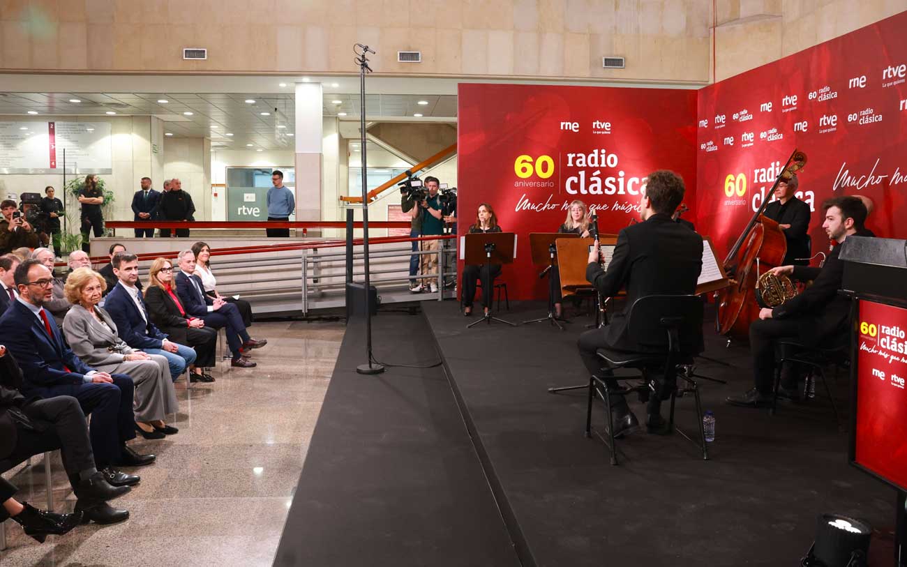 La reine Sofia a visité les studios de la RNE, et en particulier ceux utilisés par les employés de la station Radio Clásica. Cette radio a été créée en 1965 sous le nom de Segundo Programa. Aupauravant, d’autres fréquences locales gérées par RNE avaient déjà adopté une programmation de musique classique. Segundo Programa a pris le nom de Radio 2 en 1981. Finalement, elle a été rebaptisée Radio Clásica en 1984.