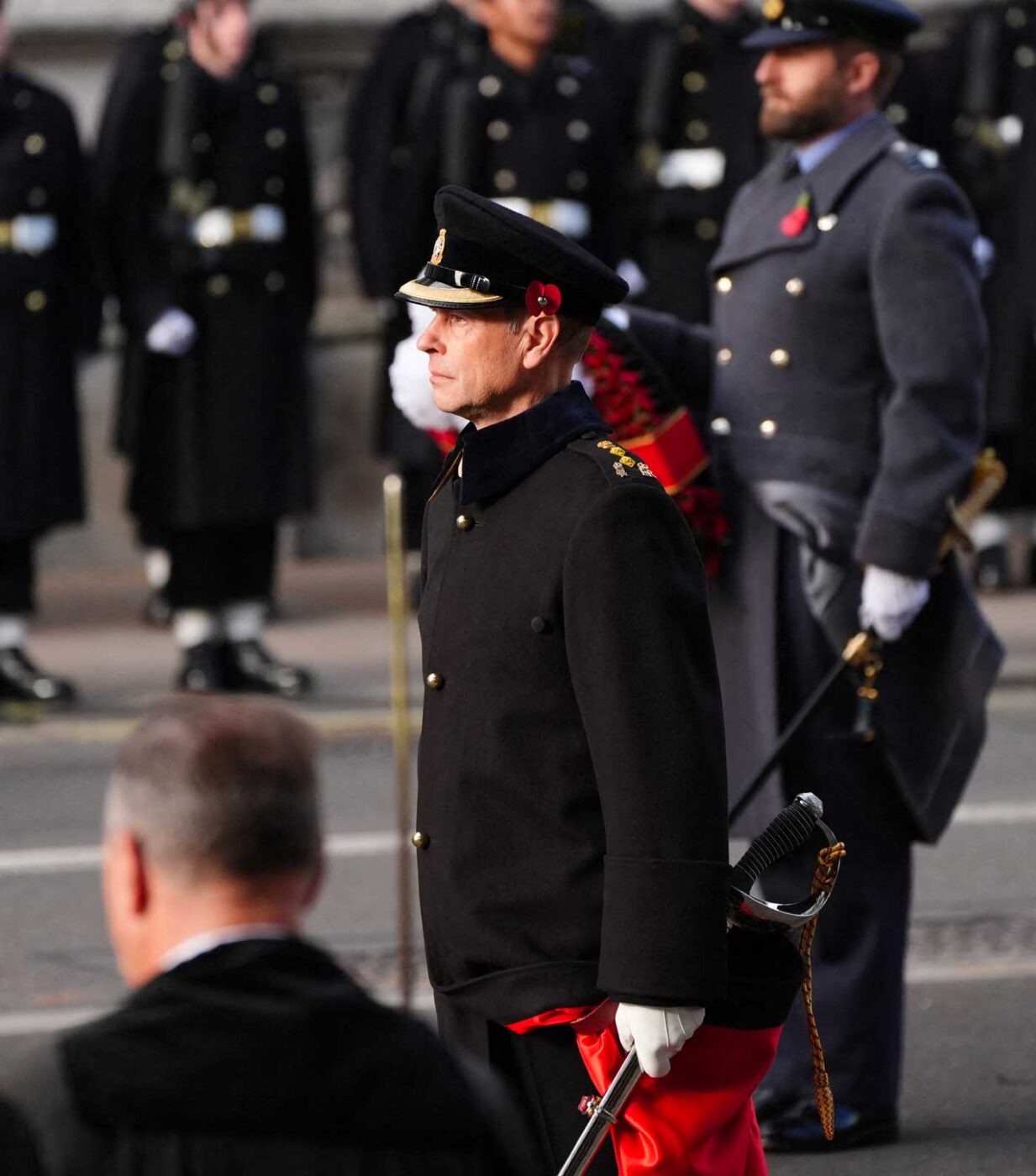 Le roi Charles III, 76 ans, était accompagné de son fils aîné, le prince de Galles, 43 ans, et de son frère, le duc d’Édimbourg, 61 ans, pour participer aux célébrations en fin de matinée. Charles et William ont déposé une couronne de poppies au pied du Cénotaphe. La princesse Anne, en déplacement en Australie, était représentée par sa vice-secrétaire, la lieutenante-colonelle Catherine Skinner. Deux minutes de silence ont été respectées à 11 heures, en présence d’une vingtaine de vétérans nonagénaires et centenaires, qui ont servi durant la Seconde Guerre mondiale.