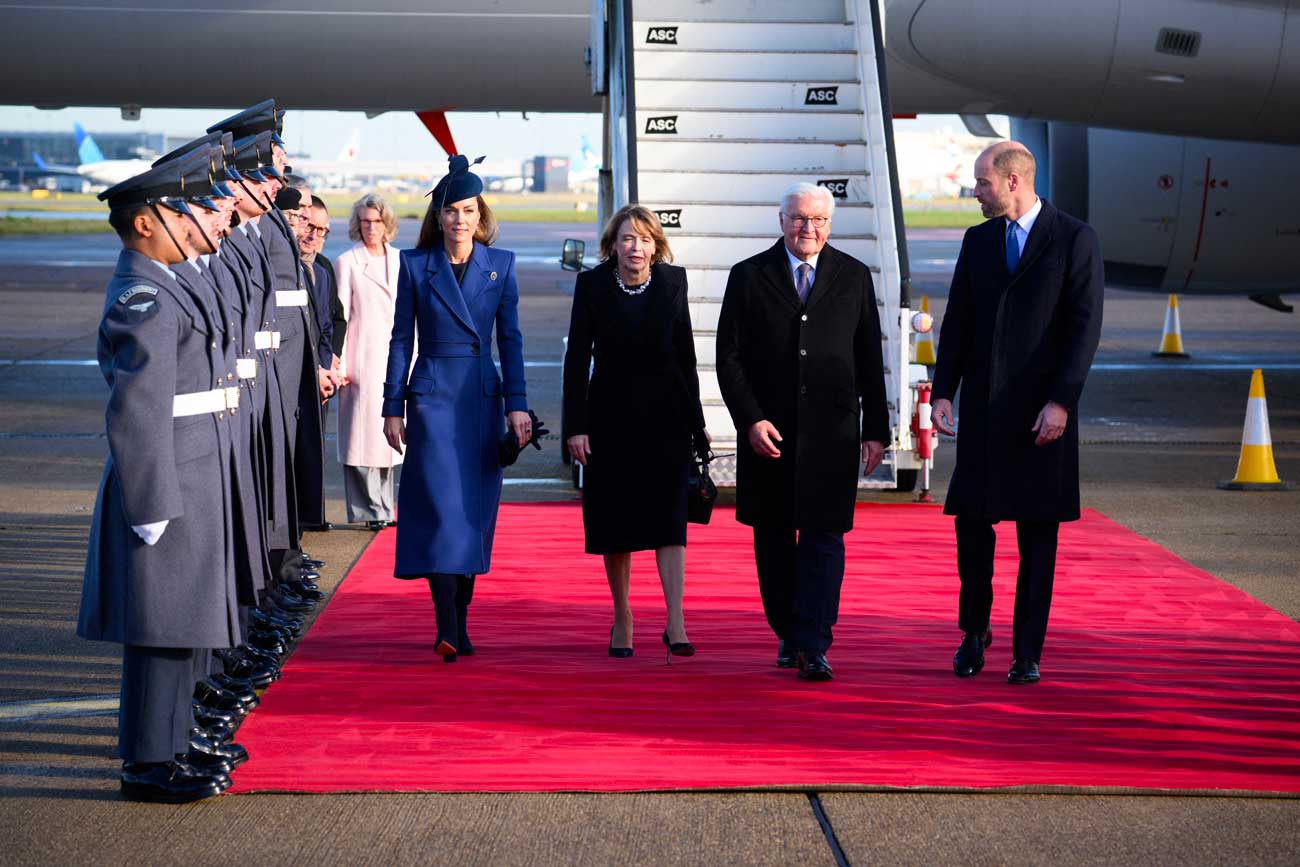 Le président allemand et son épouse sont arrivés à l’aéroport de Heathrow ce mercredi et ont été accueillis à la sortie de leur avion par le prince et la princesse de Galles, qui étaient accompagnés de l’ambassadrice d’Allemagne au Royaume-Uni, Susanne Baumann. Il s’agit de la première visite d’État d’un chef d’État allemand depuis 27 ans. La dernière visite d’État d’un président fédéral allemand remontait à décembre 1998, celle de Roman Herzog.