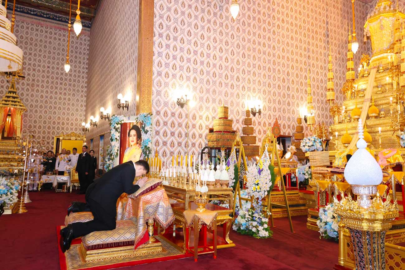 La reine Sirikit, veuve du roi Bhumibol et mère de l’actuel roi Maha Vajiralongkorn, est décédée le 24 octobre 2025 à 93 ans. Le 26 octobre, sa dépouille a été transférée de l’hôpital Chulalongkorn vers le Grand Palais de Bangkok. Depuis lors, des cérémonies royales d’hommage sont organisées quotidiennement devant l’urne royale, si on en croit les informations fournies par le Bureau royal.