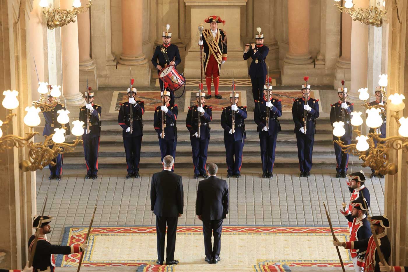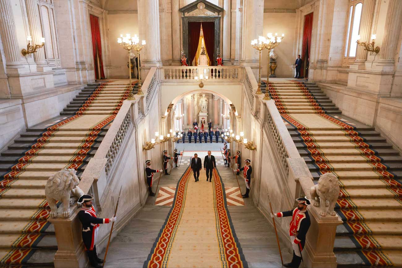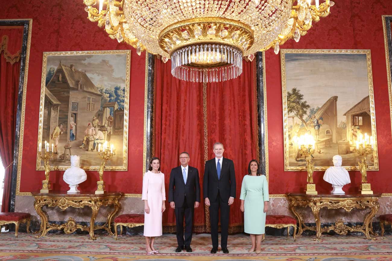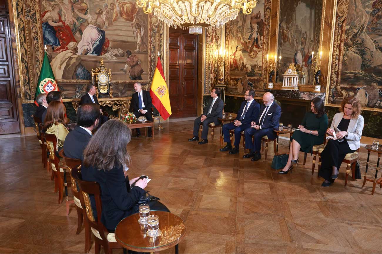 Le roi Felipe VI a accueilli le président Seguro au palais royal de Madrid, puis les deux hommes ont tenu leur première réunion, avec et sans les membres des deux délégations. Le président portugais voyage avec son épouse, Margarida Maldonado. Après la réunion, la reine Letizia s’est jointe au roi Felipe VI pour participer au déjeuner officiel organisé en l’honneur de la visite du couple présidentiel portugais en Espagne.
