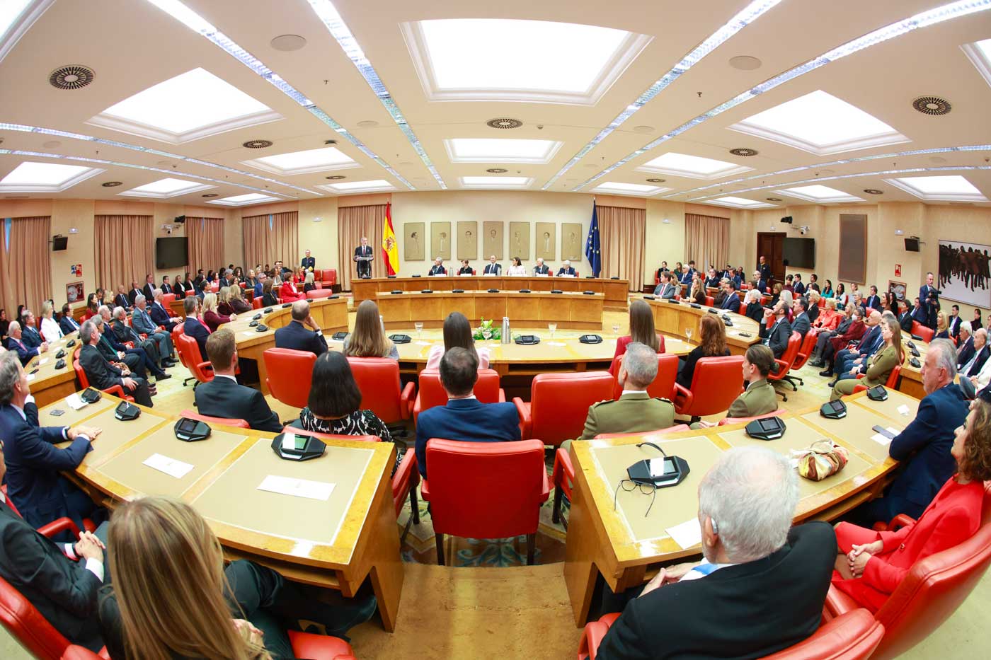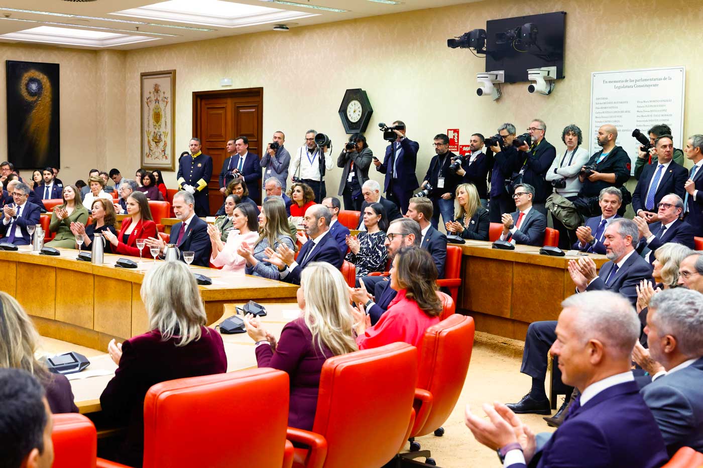 La cérémonie au Congrès des députés a pris la forme d’un colloque intitulé « 50 ans après : la Couronne dans la transition démocratique ». Juan José Laborda, président du Réseau d’études des monarchies contemporaines (REMCO), les journalistes Iñaki Gabilondo et Fernando Ónega, ainsi que des chercheurs et universitaires ont pris la parole et ont débattu.