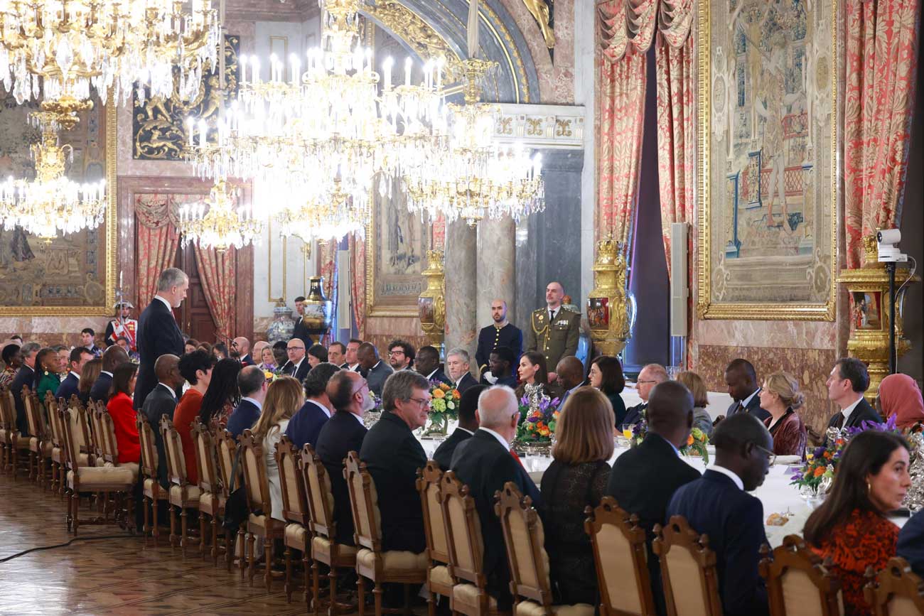 Après les réunions, en face-à-face puis en présence des deux délégations, le roi Felipe a guidé son invité jusqu’à la salle à manger d’État. Le roi Felipe et la reine Letizia avaient organisé un prestigieux déjeuner en l’honneur du président sénégalais et de sa délégation. Les autorités espagnoles et sénégalaises ont participé à ce déjeuner.