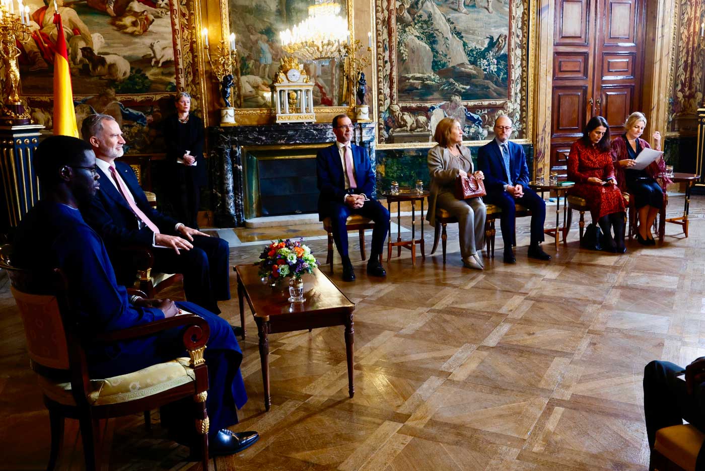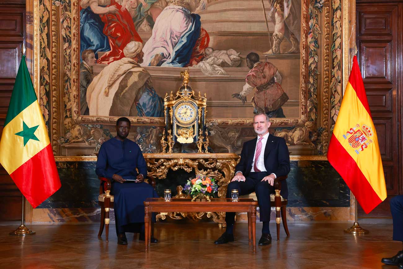 Le roi Felipe a salué le président Bassirou Diomaye Faye et sa délégation, puis les deux chefs d’État ont tenu une réunion dans la salle des Tapisseries. À l’issue de cette réunion, la Maison royale explique que « le Sénégal est un pays prioritaire pour la coopération internationale et la politique étrangère espagnole en Afrique ». La reine Letizia avait effectué un voyage de coopération espagnole au Sénégal en 2017 et sous la précédente présidence, en 2021, elle s’était rendue à Dakar pour inaugurer un des centres de l’Institut Cervantès.