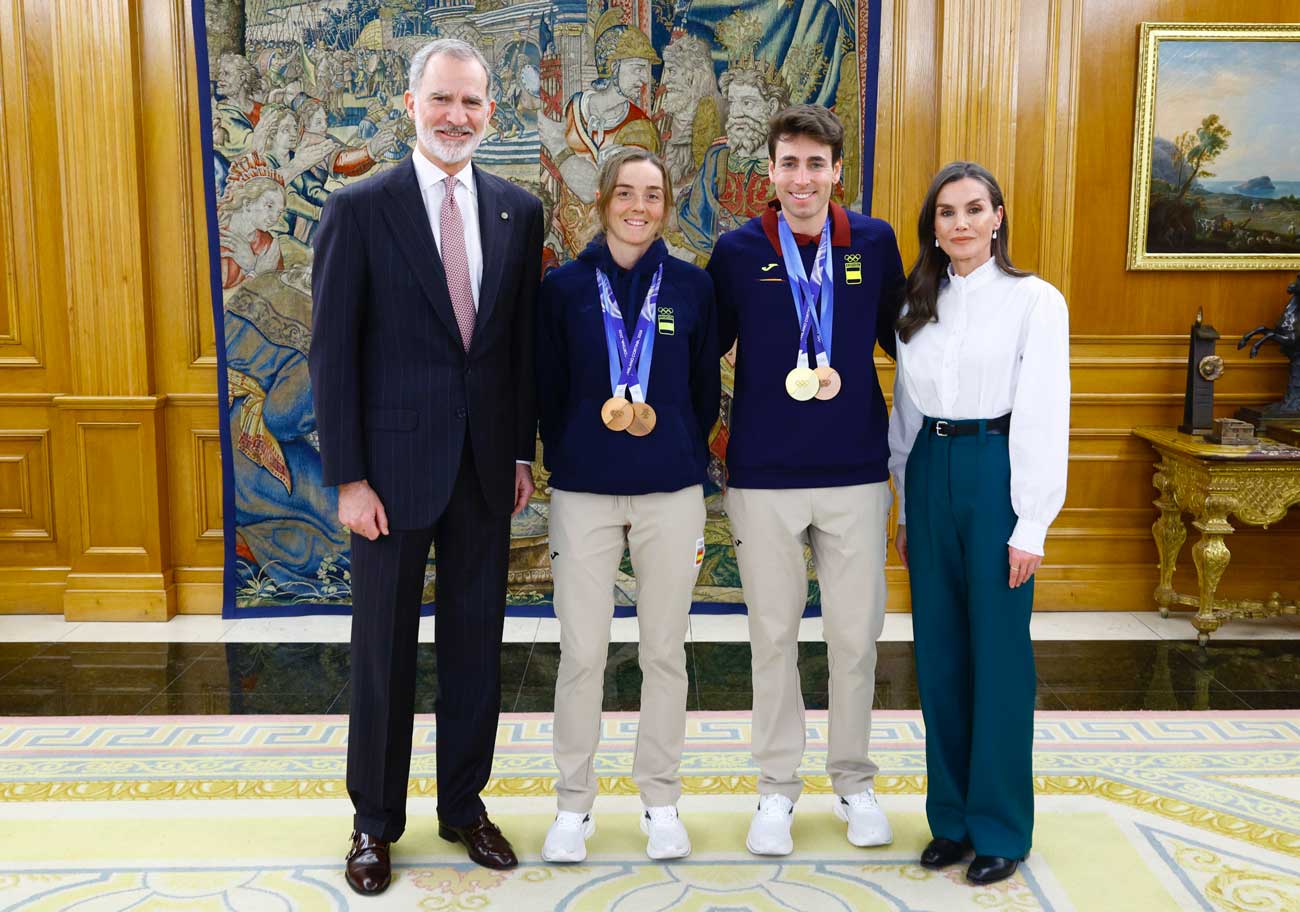 Le roi Felipe VI et la reine Letizia posent avec Oriol Cardona Coll et Ana Alfonso Rodriguez les deux doubles médaillés espagnols (Photo : Casa de SM el Rey)