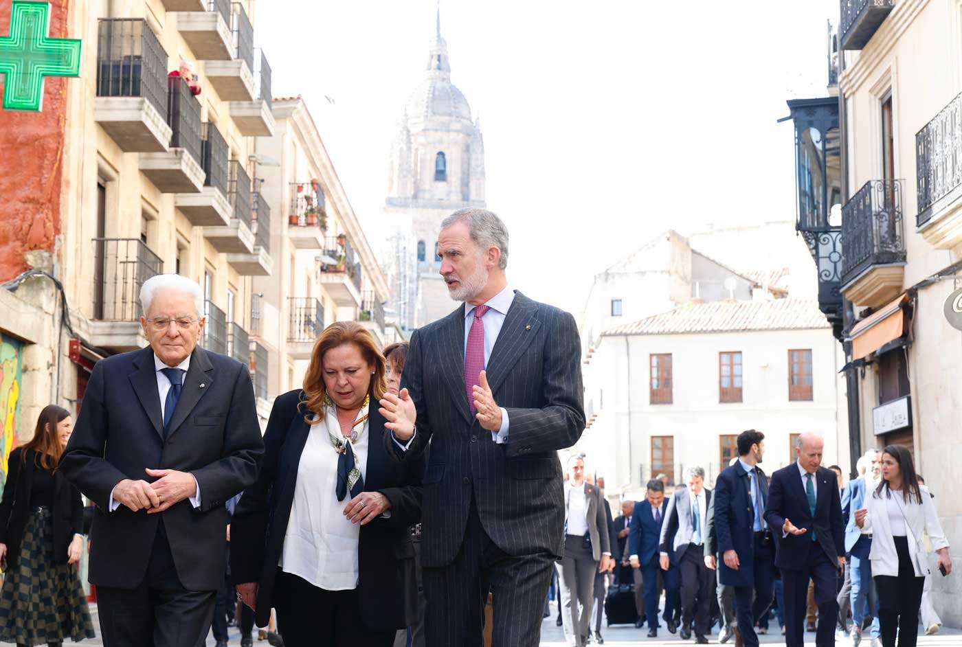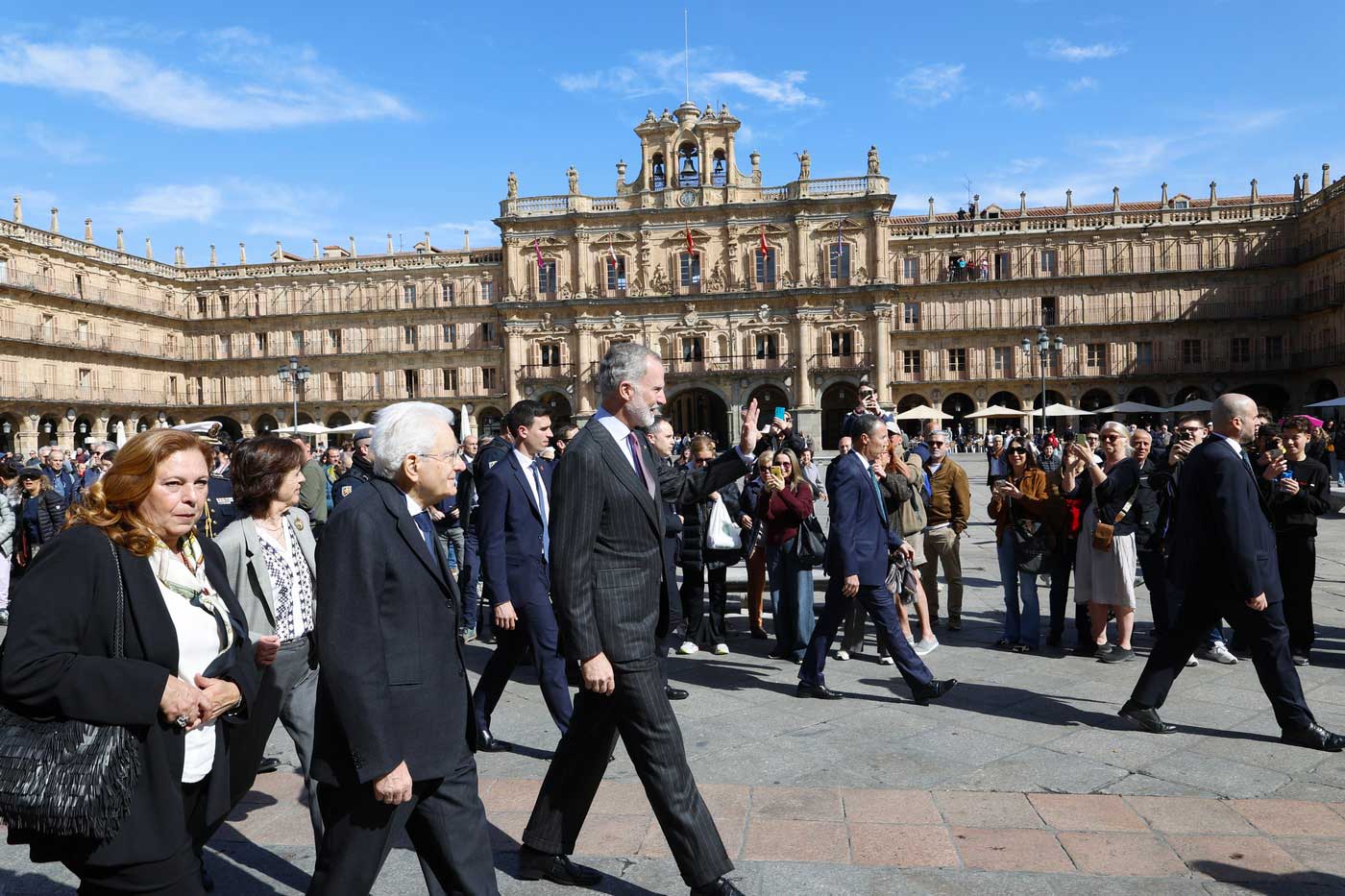 Après ce moment informel, les deux chefs d’État ont pris la direction de l’Université de Salamanque, un prestigieux établissement fondé en 1218. Le roi d’Espagne et le président italien ont rejoint l’université à pied, ce qui leur a permis d’admirer les façades de certains bâtiments emblématiques de cette ville de 146 000 habitants, située en Castille-et-León. Lors de leurs déambulations dans la ville, Felipe et Mattarella ont également salué la population.