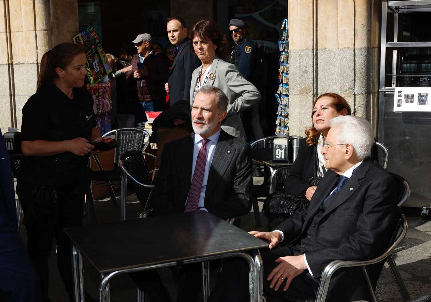 Le roi Felipe VI et le président italien Sergio Mattarella ont été aperçus à la terrasse d’un bar à Salamanque. Les deux chefs d’État ont pris un café, avant que le président italien ne se rende à l’université pour recevoir son diplôme de docteur honoris causa.